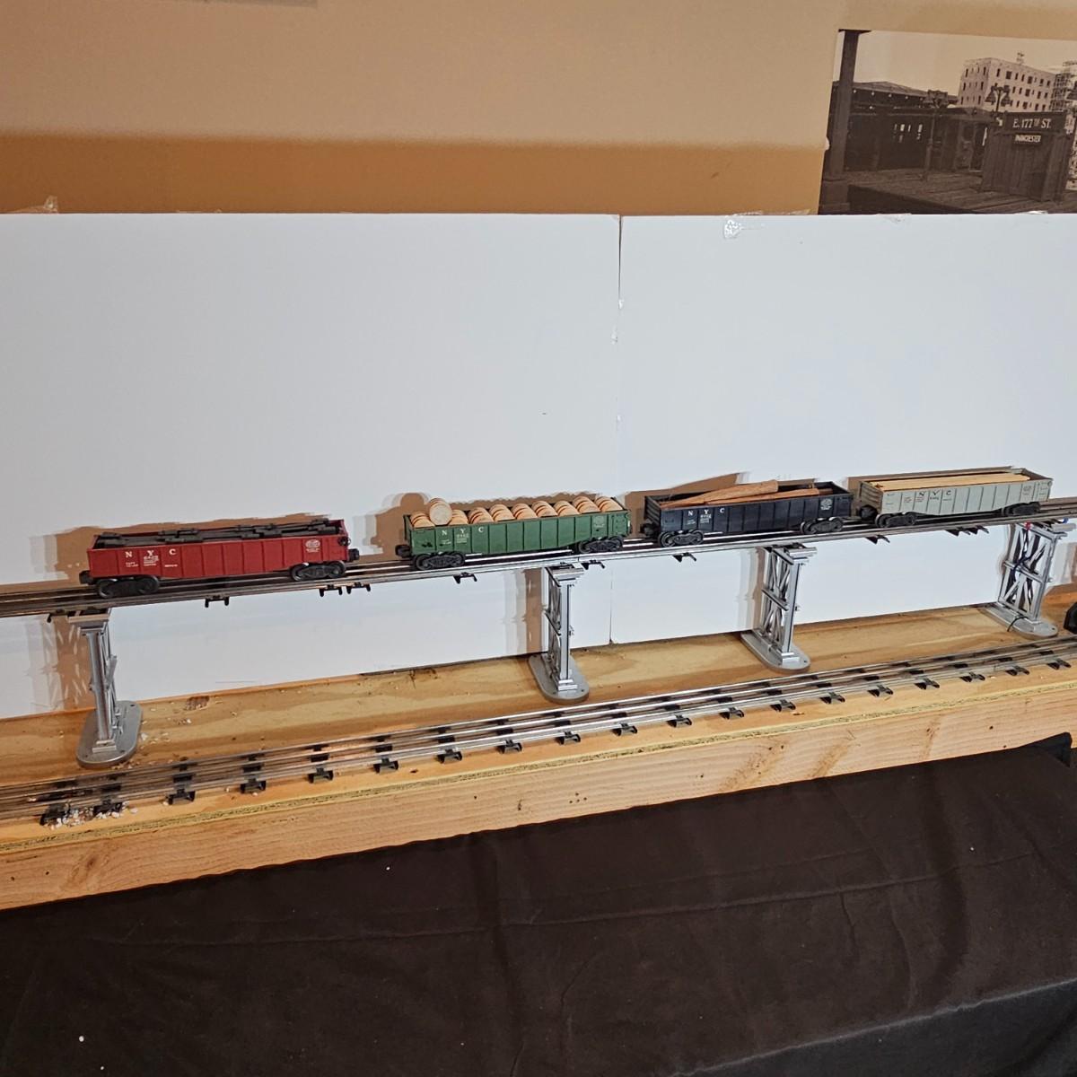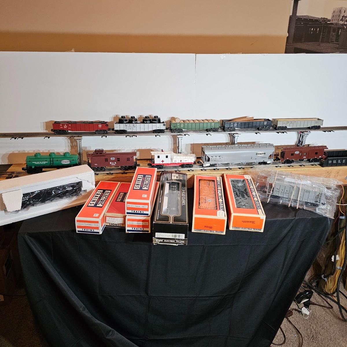 Multiples of the Lionel #6462 work gondola, lettered for the New York Central system. Some with cargo, others not, and some with older style boxes. Lot also includes three different caboose, one fire/rescue unit with illumination, not tested. Some hoppers, a reefer and more. About 20 cars total. See photos for details. Shipping available. Please note that any price tag seen on an item was not put there by Sterling Transitions and does not reflect the current value of the item.
