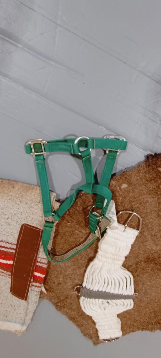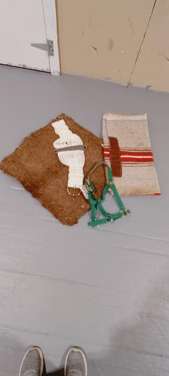 NYLON HORSE HALTER, WOOL SADDLE PAD, SADDLE BLANKET AND CINCH