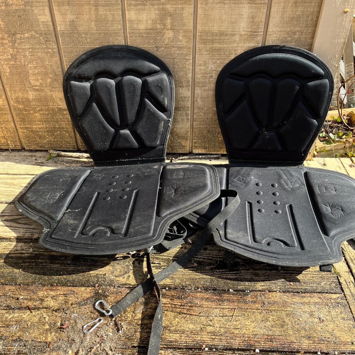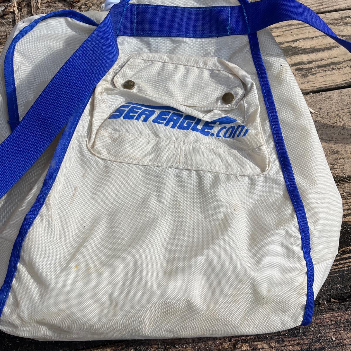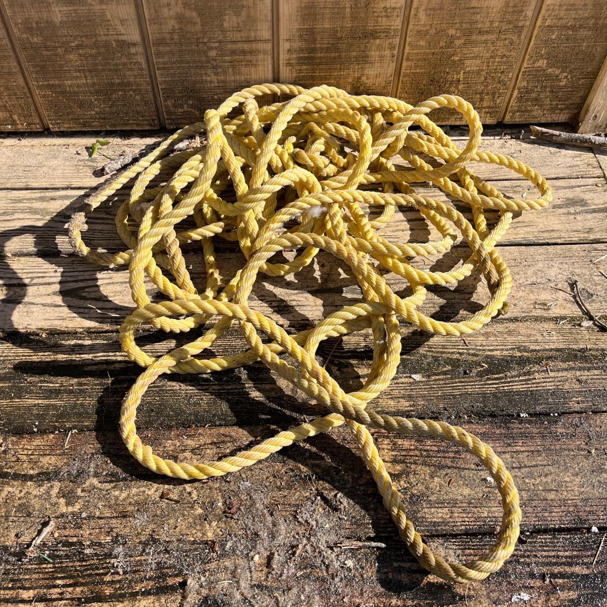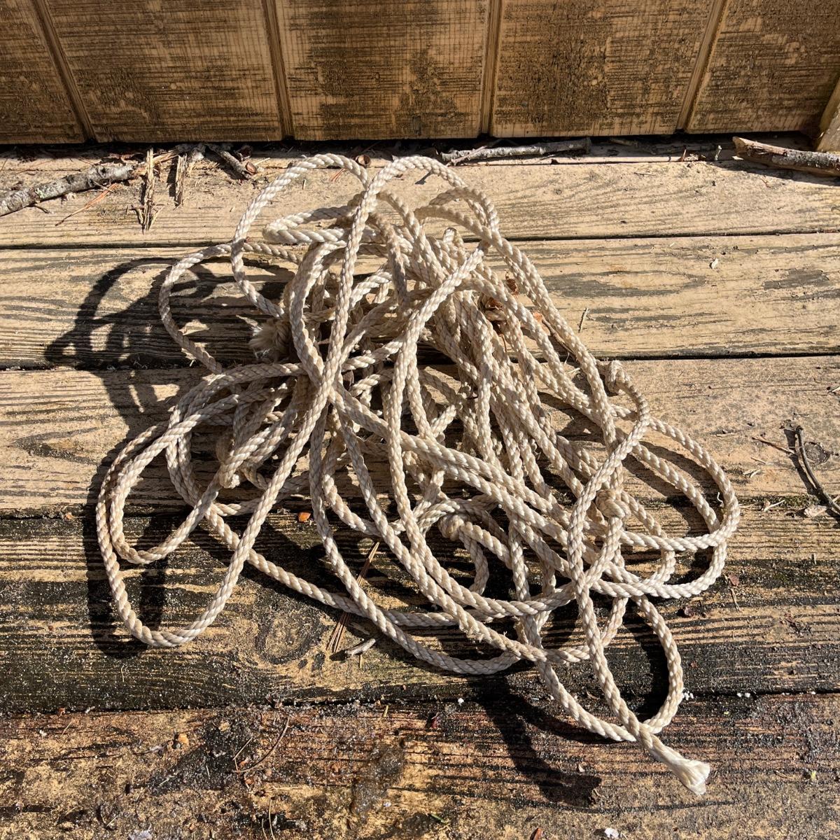 Lot includes nylon rope, sisal rope, cotton rope, two boat anchors, two folding boat seats, inflatable Sea Eagle boat seat, boat engine hose adapter and more. Folding seats measure 24” x 16” x 18”H.