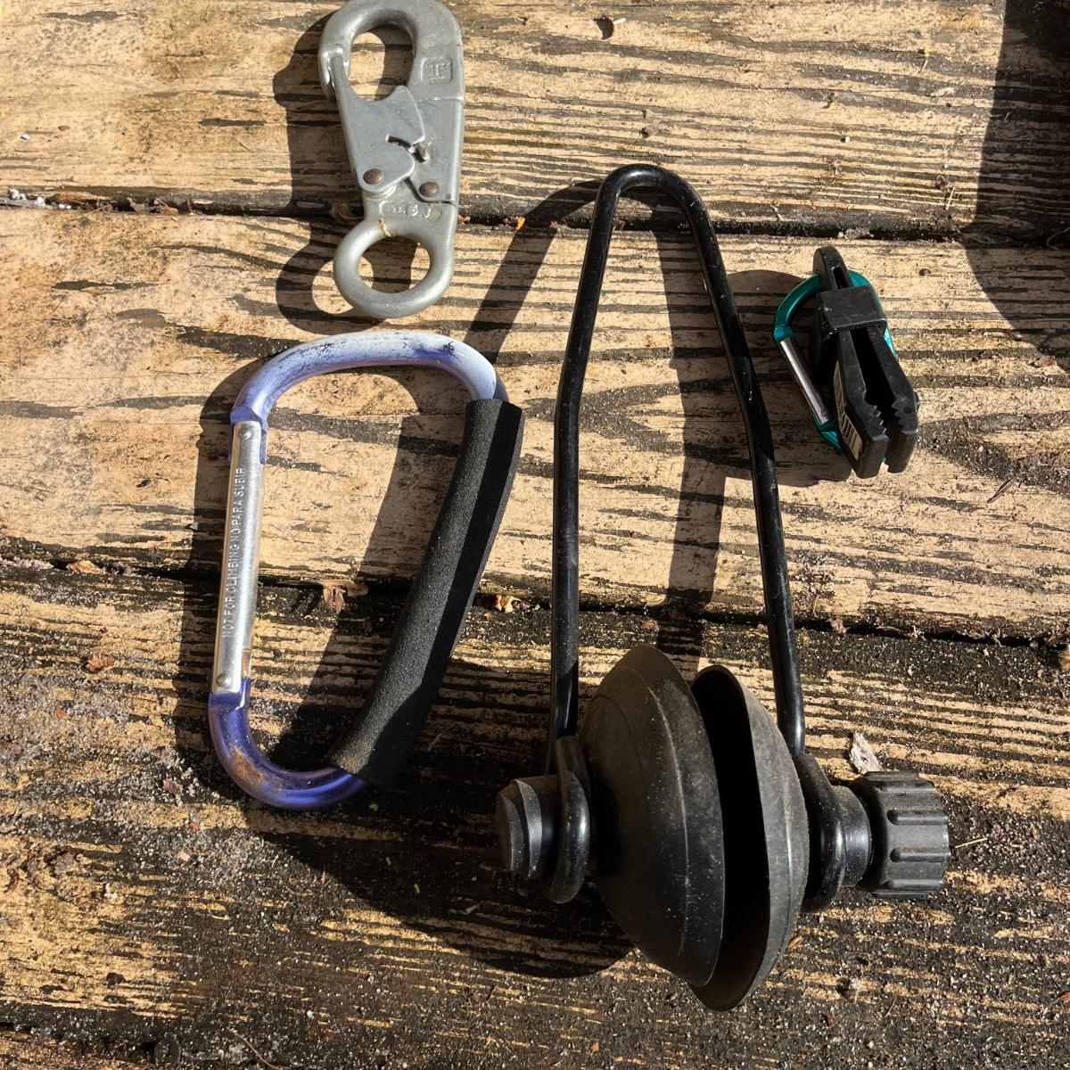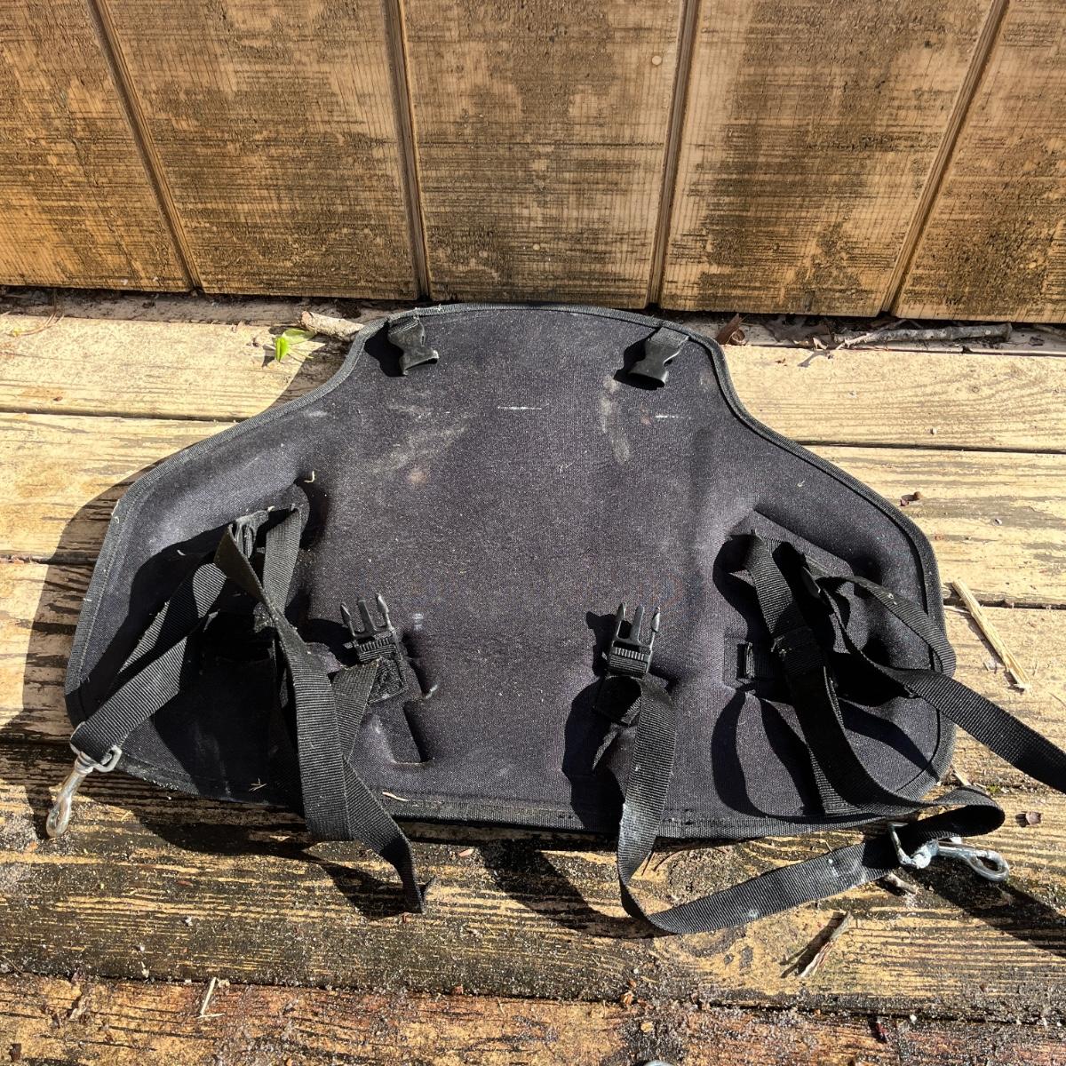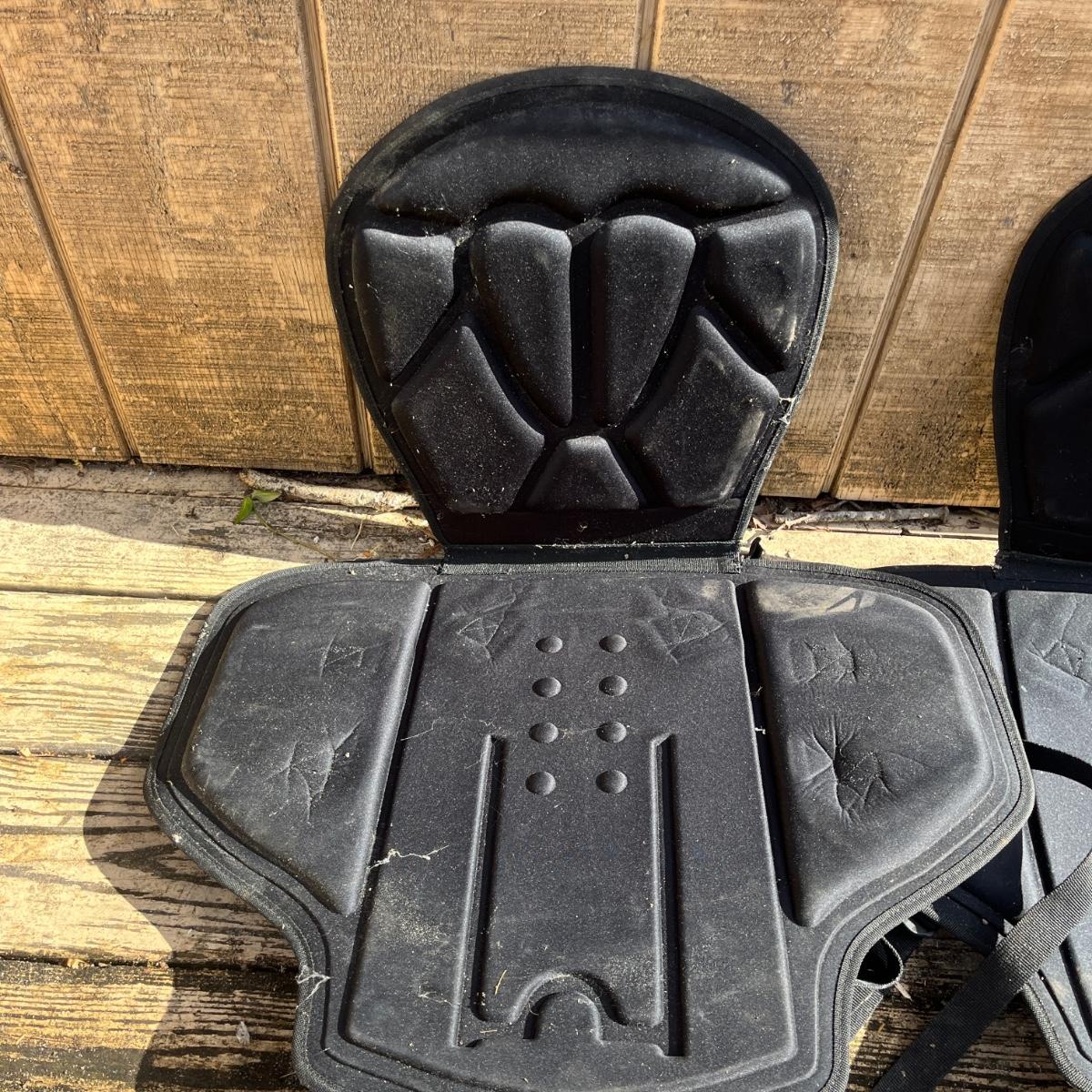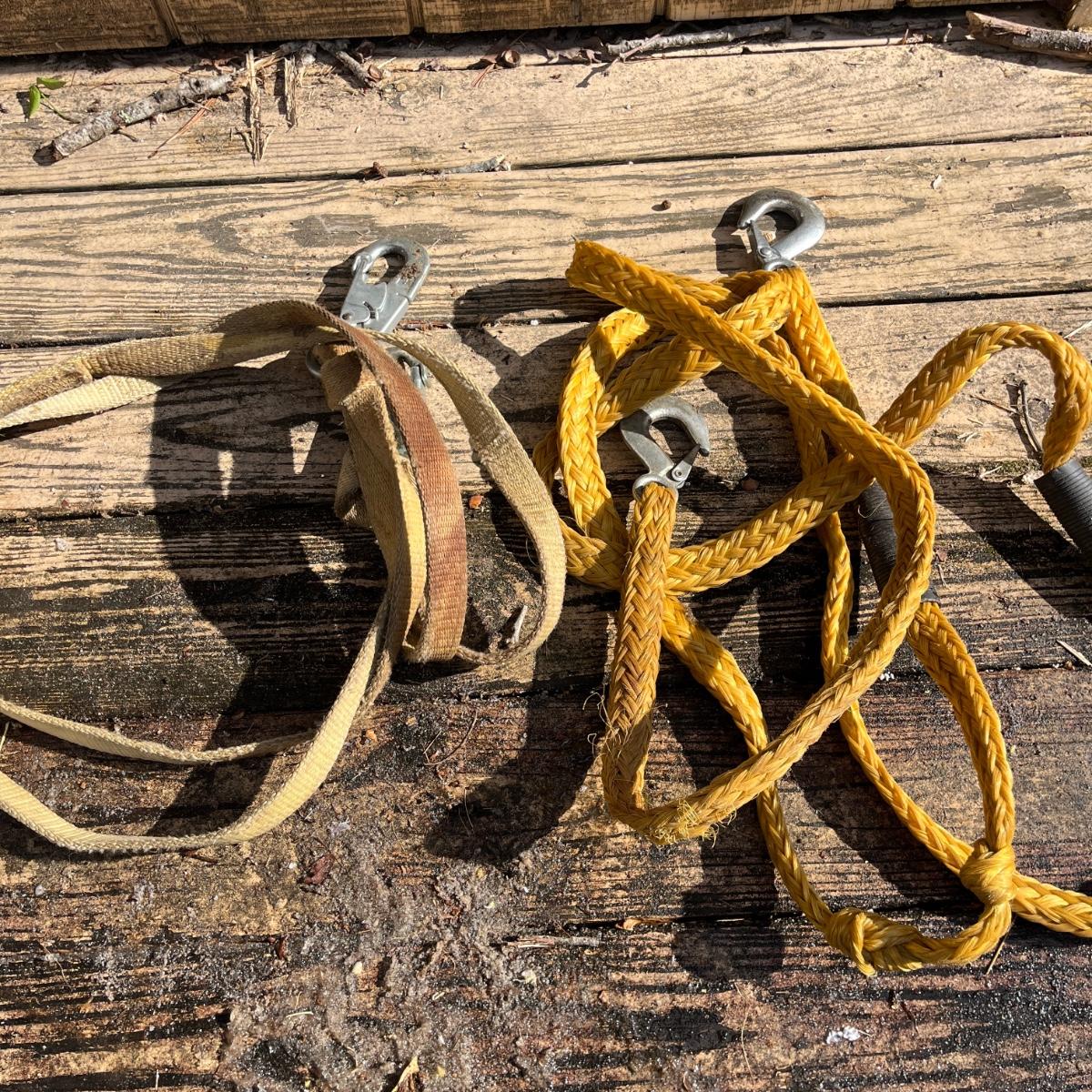 Lot includes nylon rope, sisal rope, cotton rope, two boat anchors, two folding boat seats, inflatable Sea Eagle boat seat, boat engine hose adapter and more. Folding seats measure 24” x 16” x 18”H.
