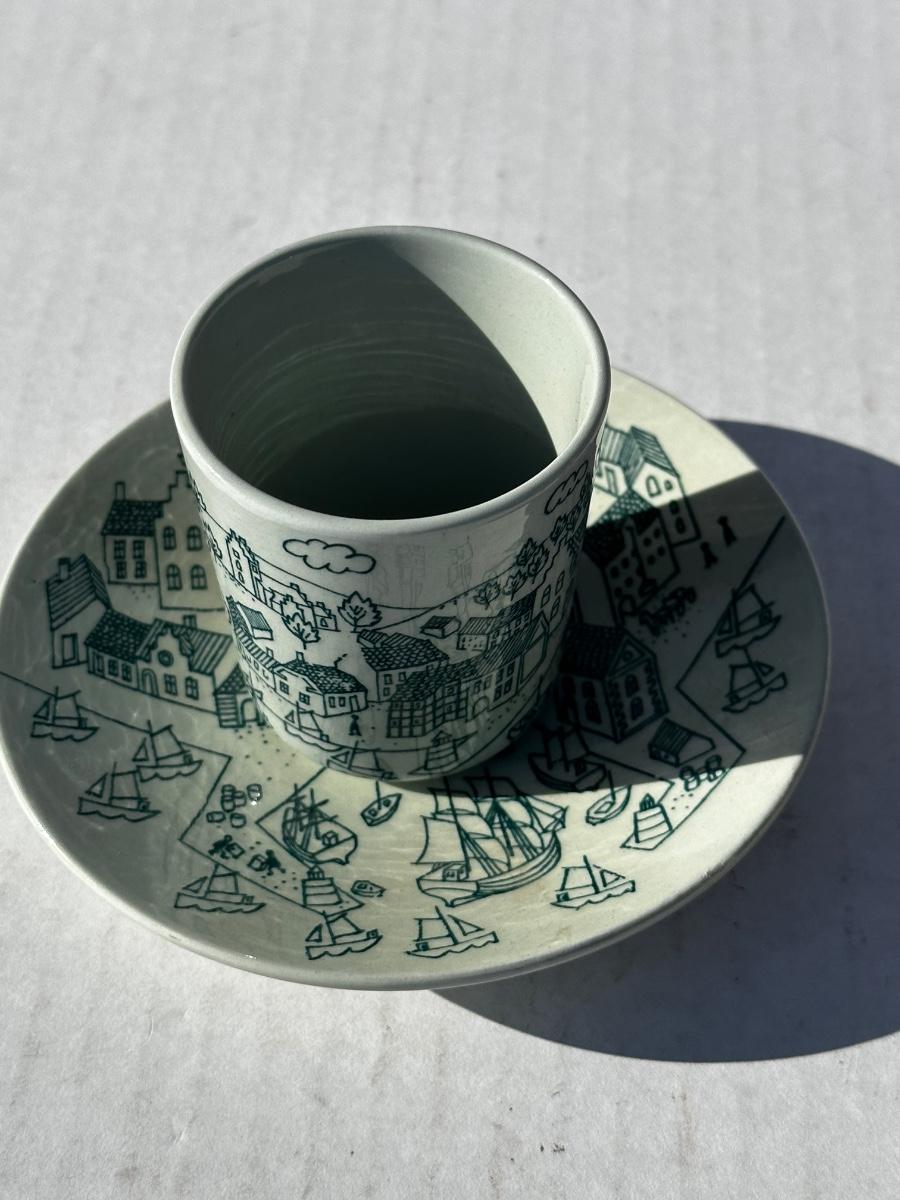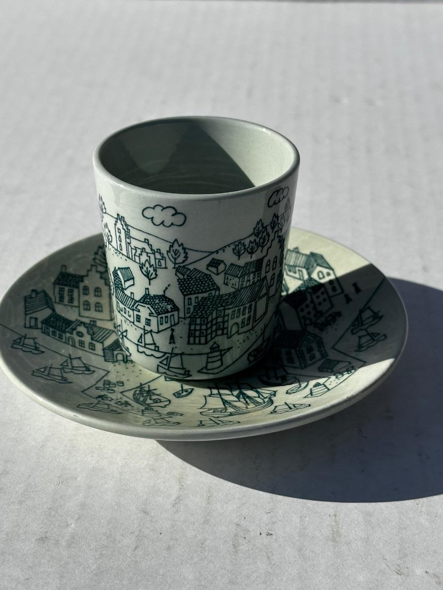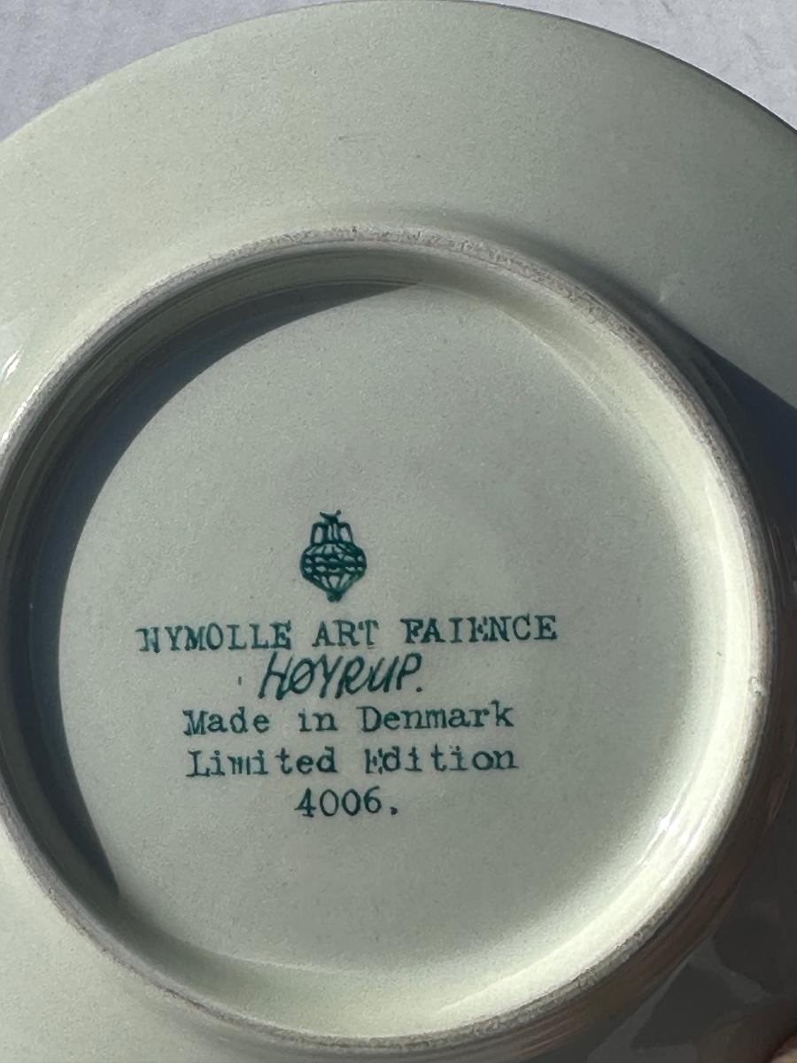 THIS IS A VINTAGE NYMOLLE ART FAIENCE HOYRUP DENMARK LIMITED EDITION 4006 CUP & SAUCER SET.