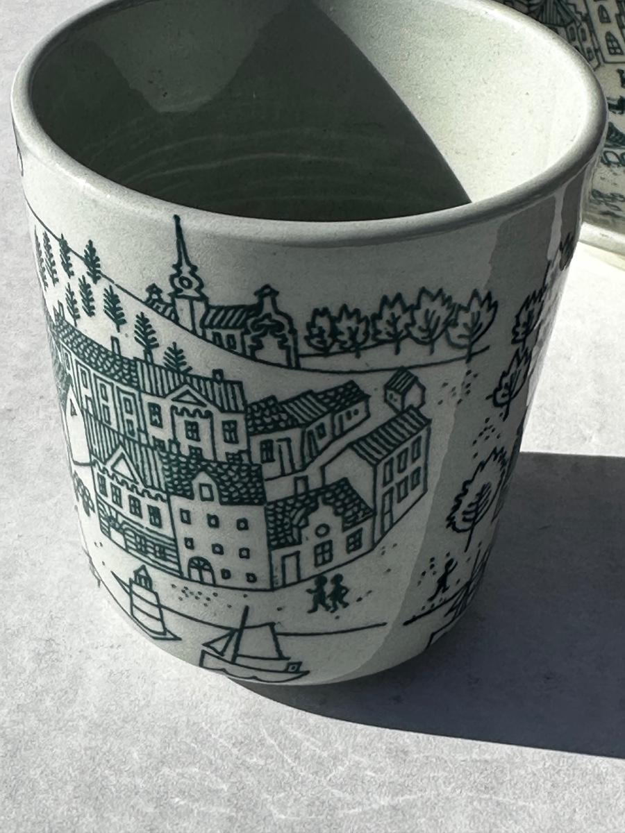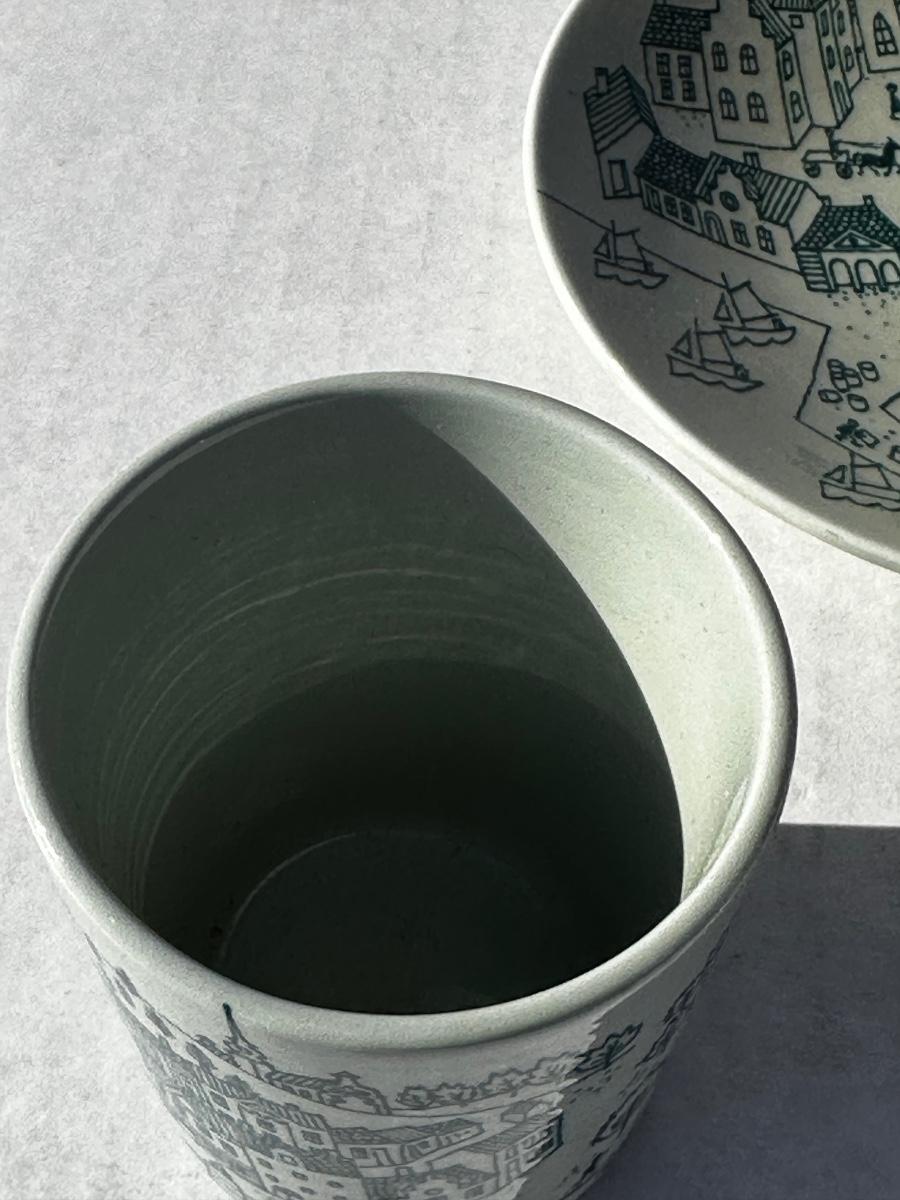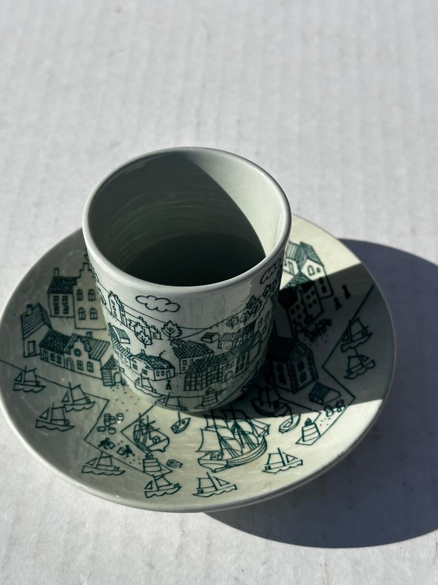 THIS IS A VINTAGE NYMOLLE ART FAIENCE HOYRUP DENMARK LIMITED EDITION 4006 CUP & SAUCER SET.