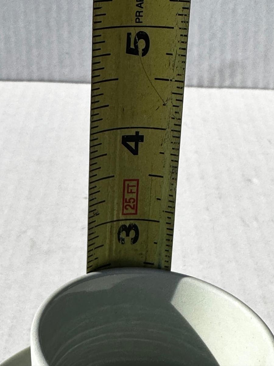 MEASURES 2 1/2" TALL X 2 1/4" DIAMETER (CUP), 4 3/4" DIAMETER X 3/4" HIGH (SAUCER).