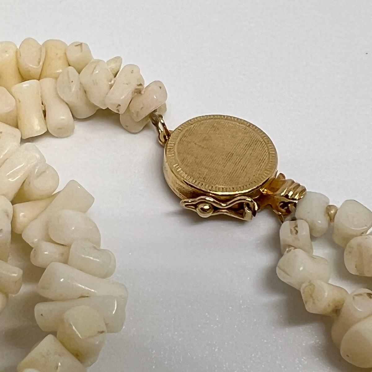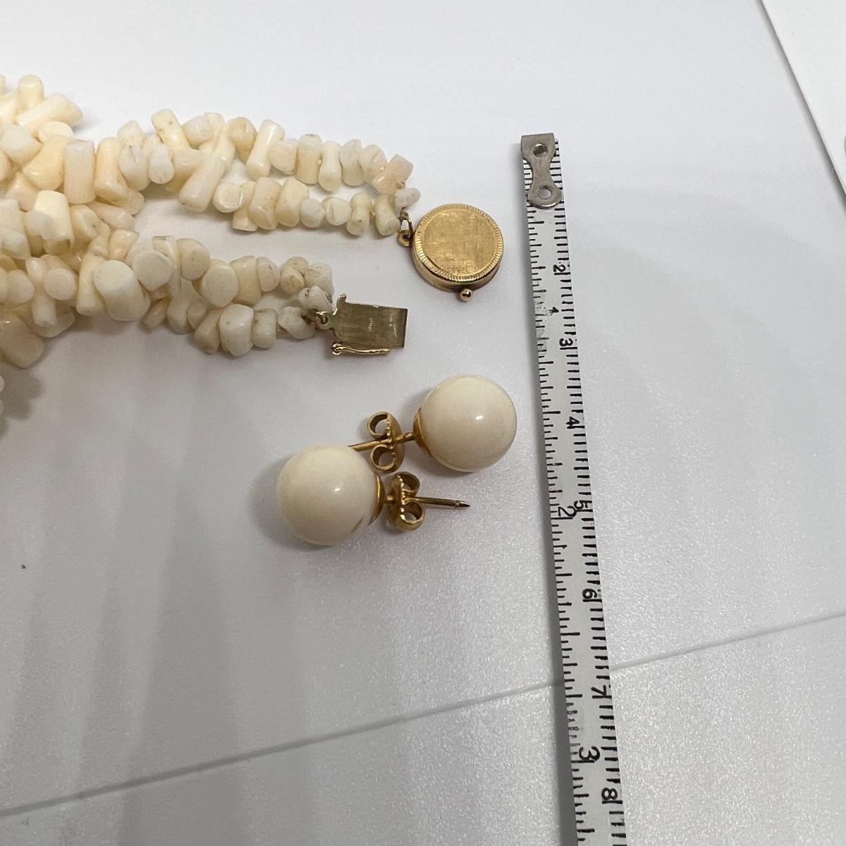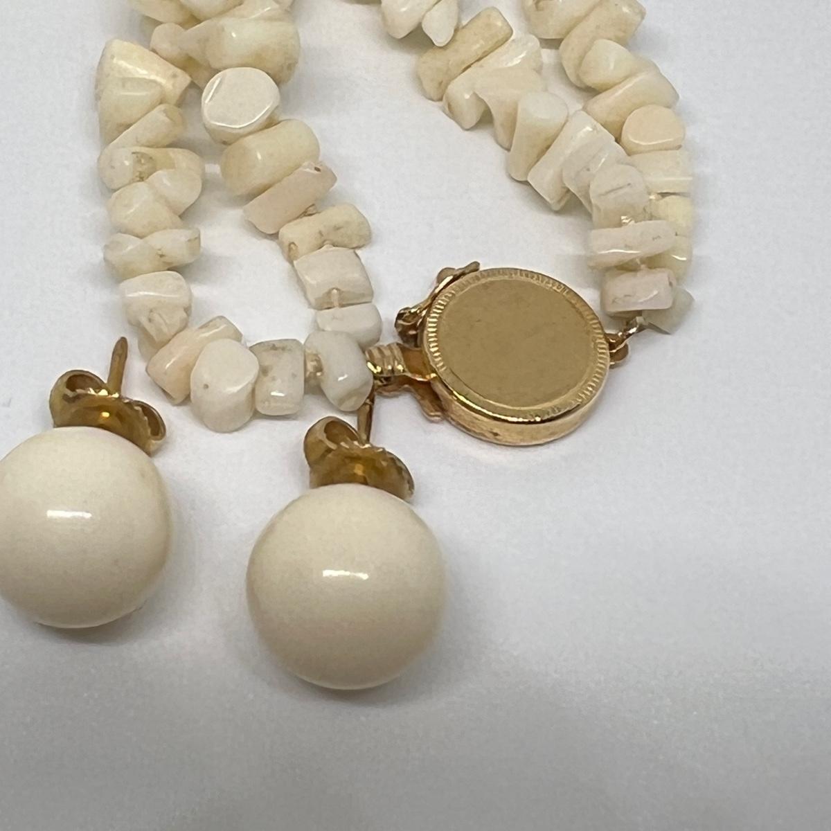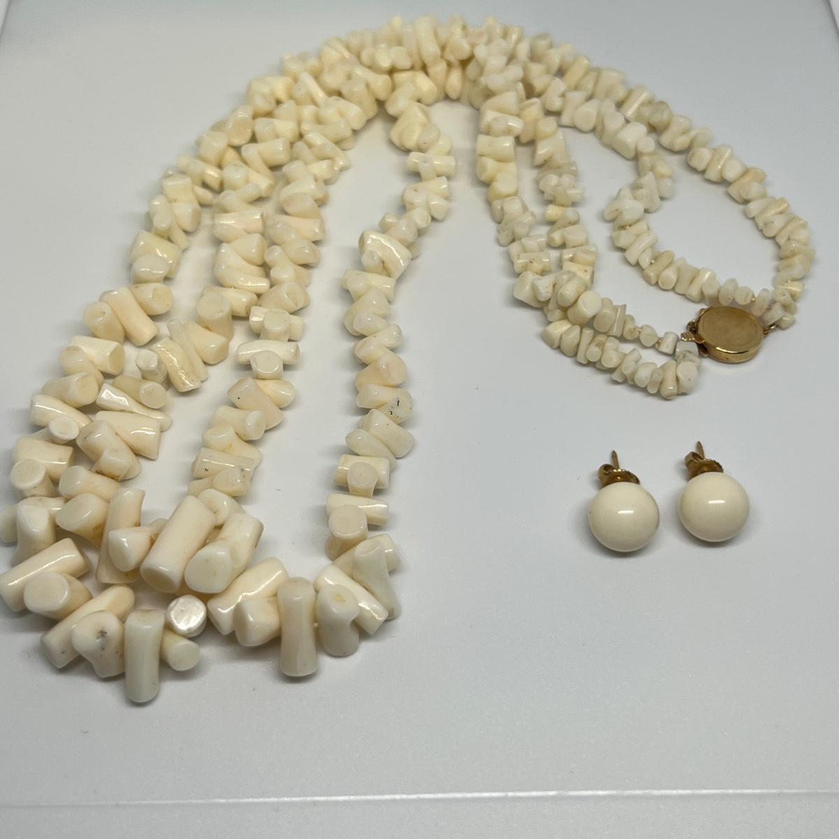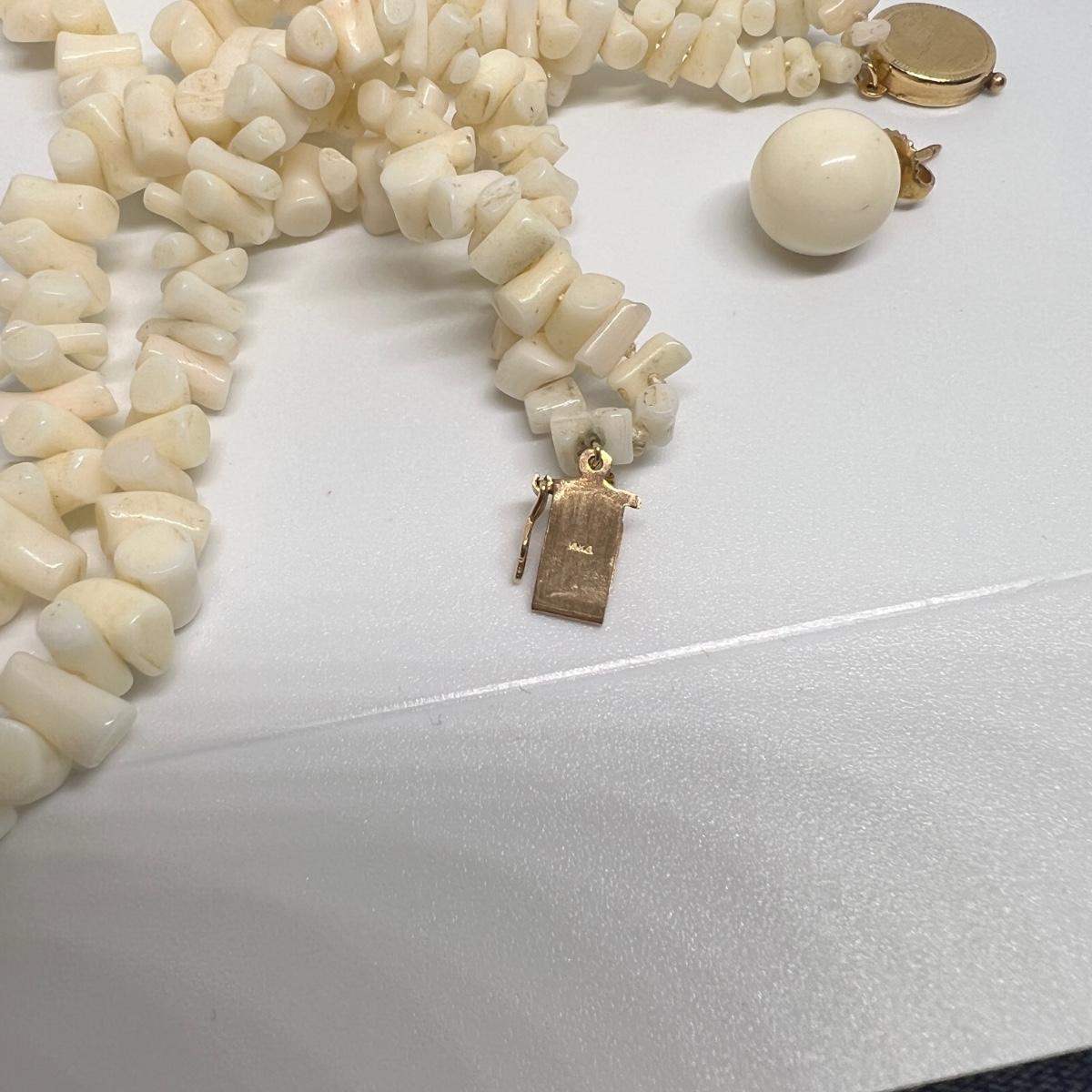 Double 22" strand with graduated coral beads. Clasp and earring studs and backings are stamped 14k. Beautiful set!