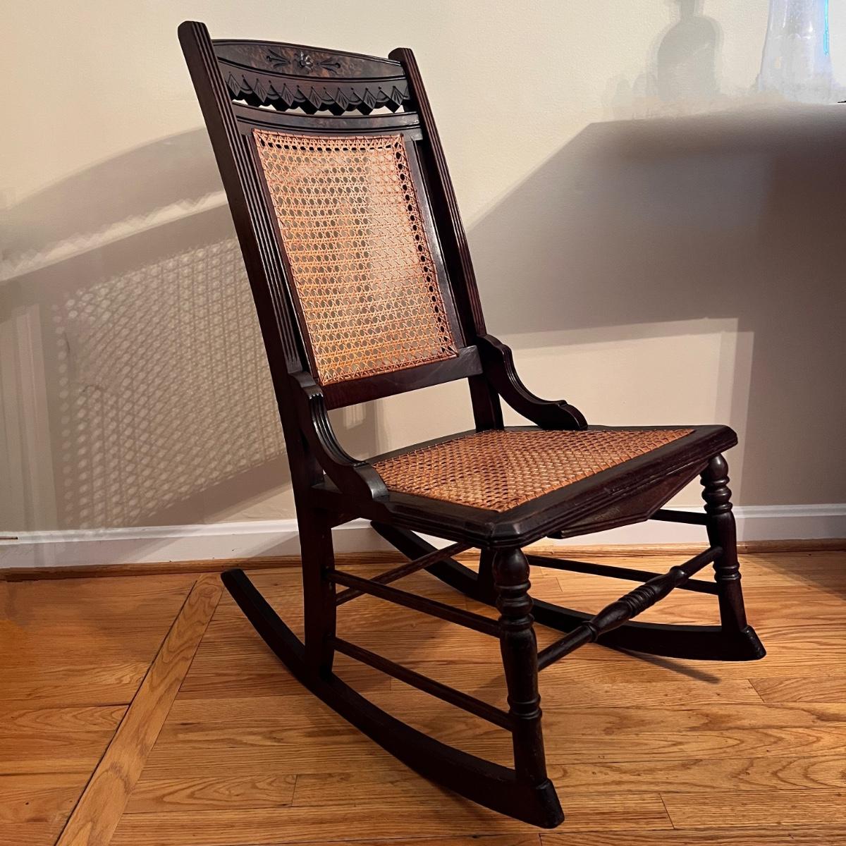 Victorian style rocking chair. Caning is fully intact.