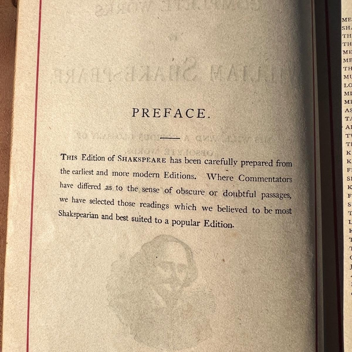 Antique Book Leather Cover Dated 1892 "Complete Works of Shakespeare"