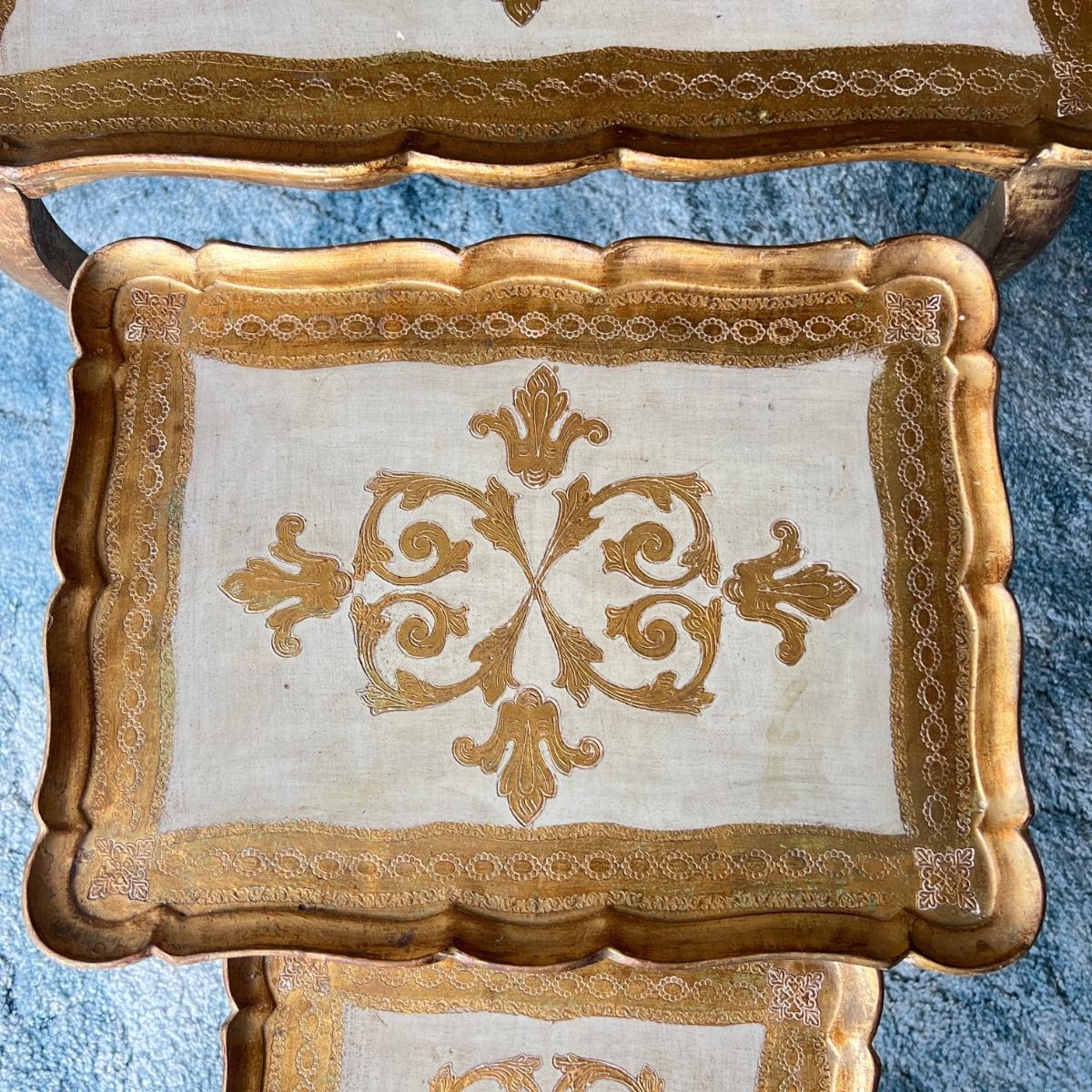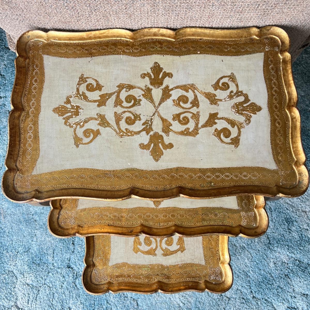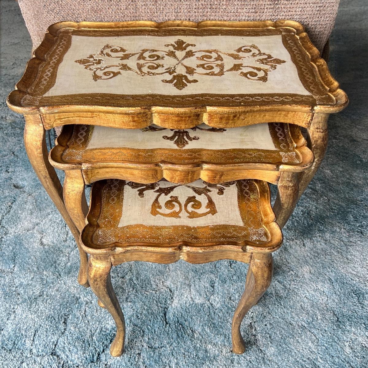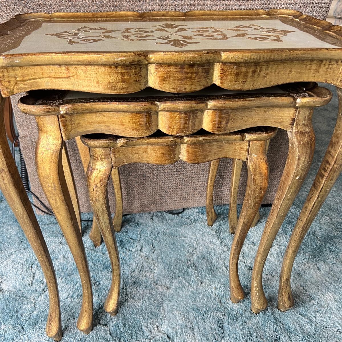 Vintage Neoclassical Gilded Gold 3 Nesting Side Tables