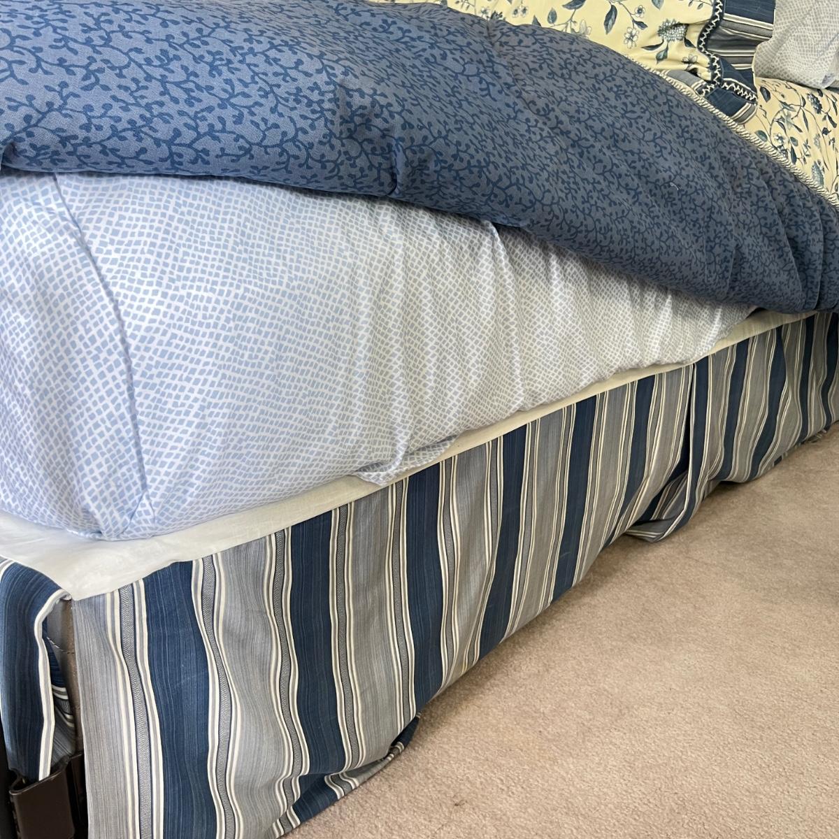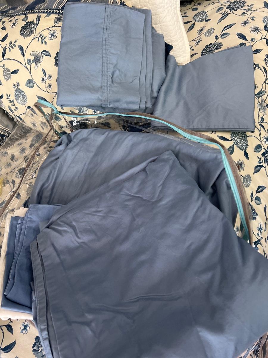 Great set with throw pillows, 4 King size pillows (2 are Beauty Rest Black), heavy quilt, bed skirt and 2 sets of sheets with cal king pillowcases. Buying as is, as found in this wonderful estate. See MANY PHOTOS for Content, Condition & Dimensions. NEVER a Buyer's Premium or Credit Card Fee. All "lots" start at just $10 and sell with No Reserve to the highest bidder.