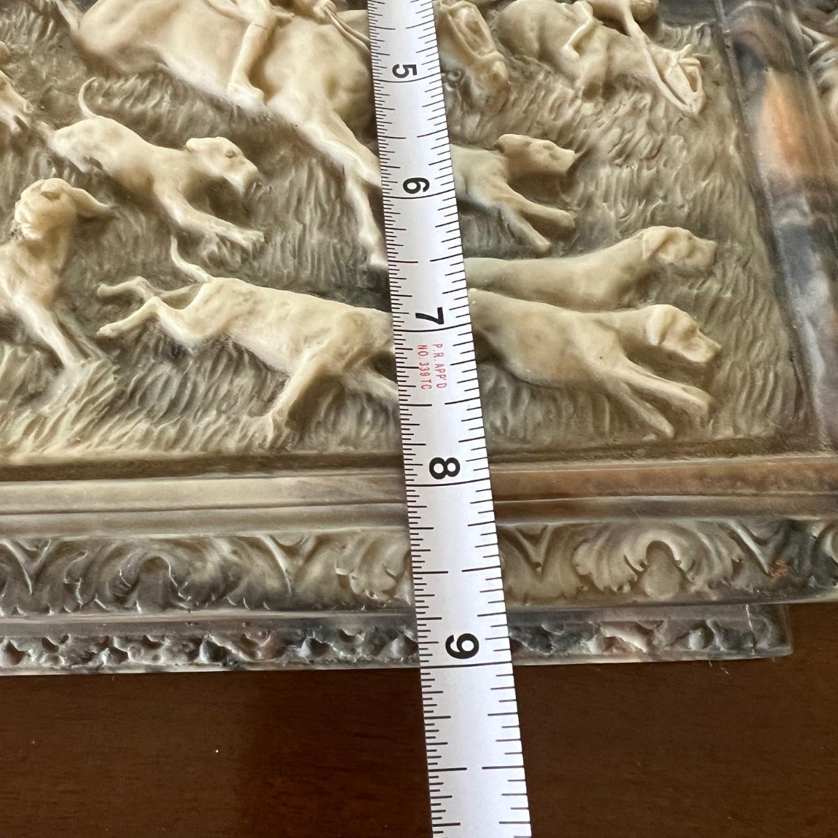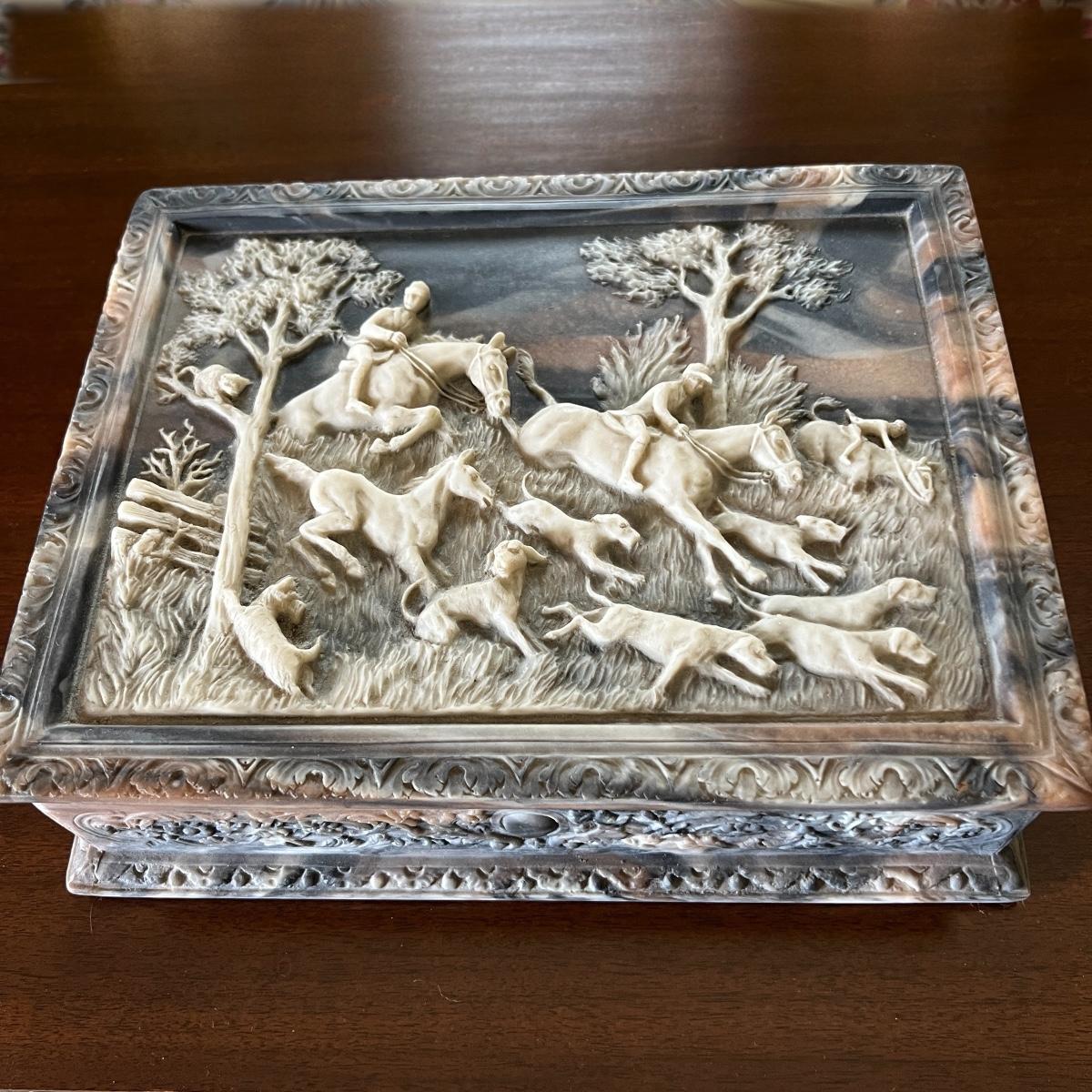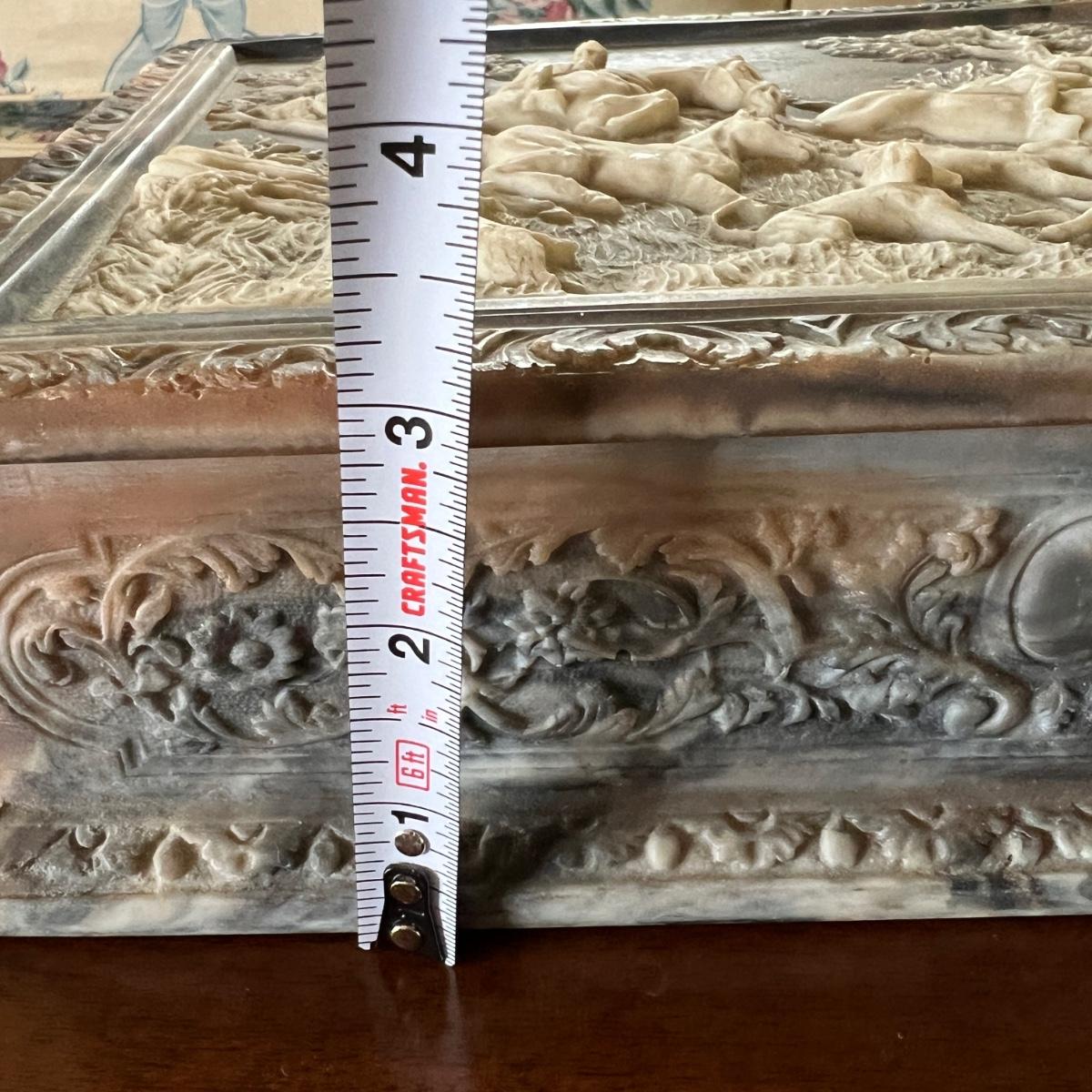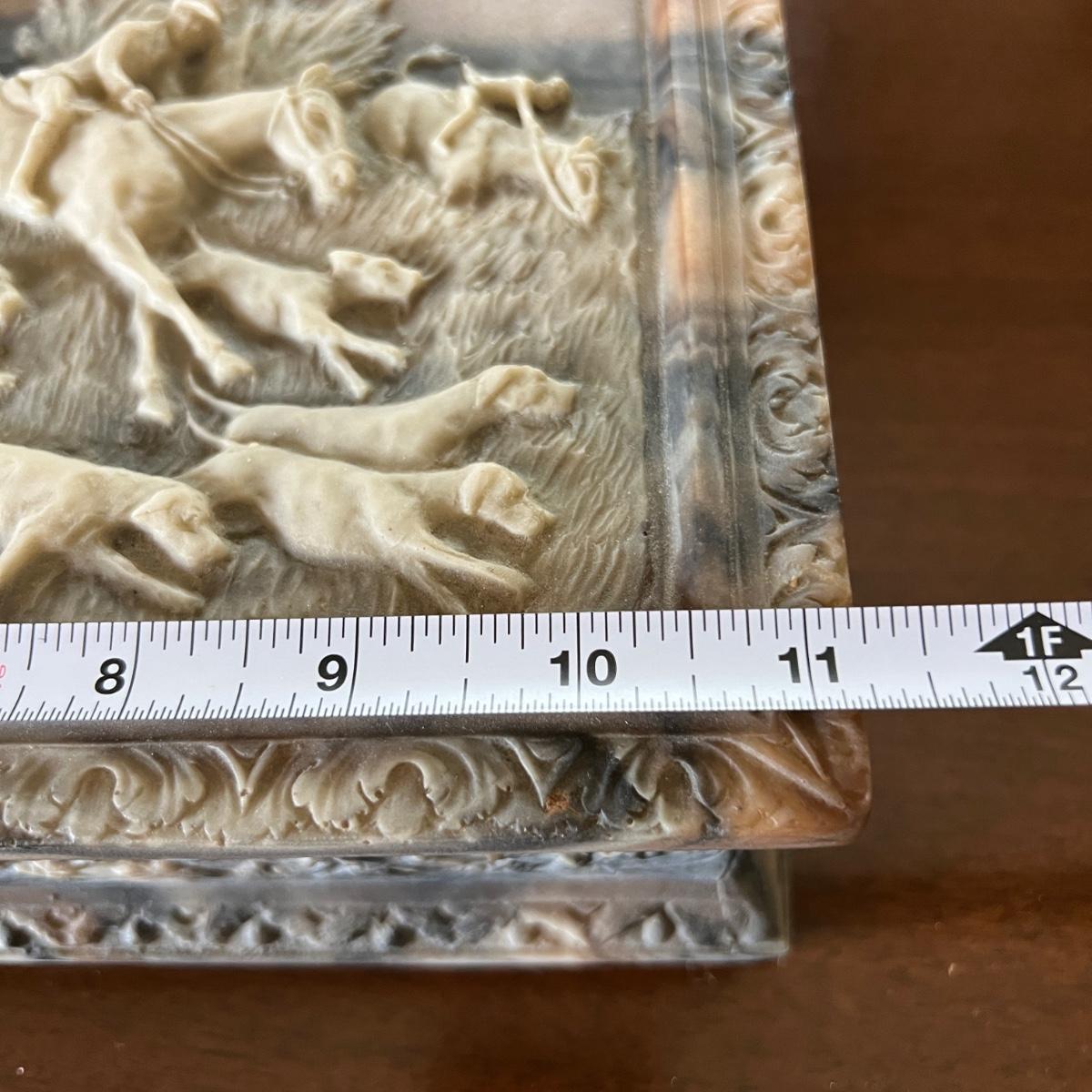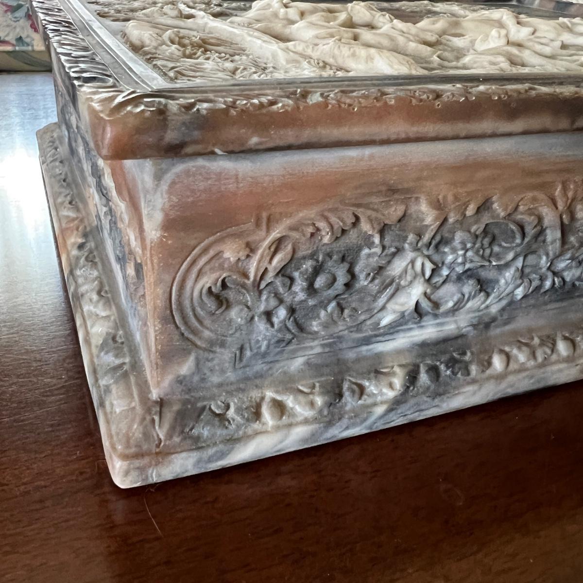 Genuine Vintage Carved Incolay Stone Jewelry Box 8"x11"