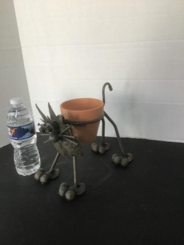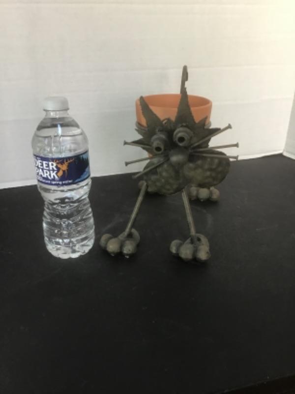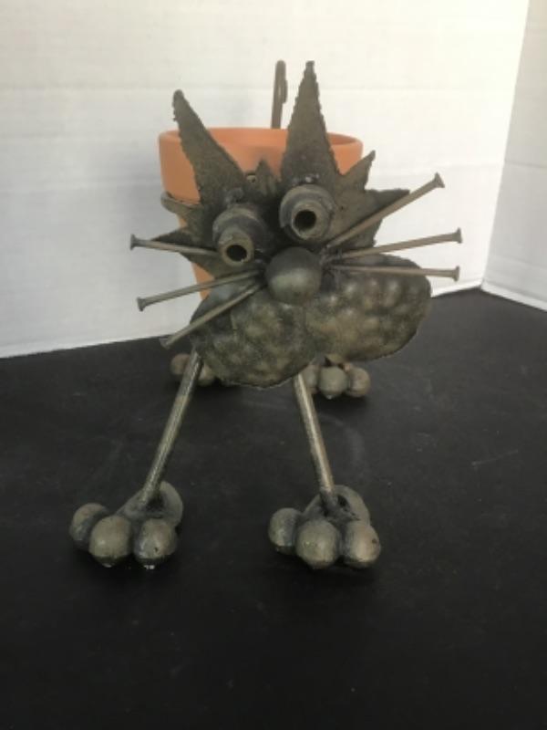 O - 1203. Scrap Metal Cat/ Flower Pot Sculpture