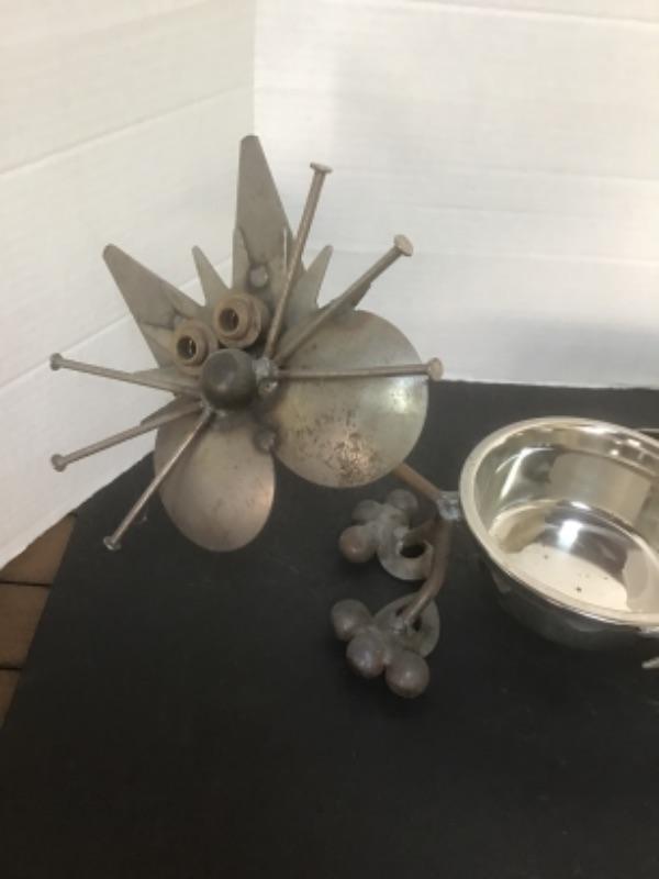 Scrap Metal Cat Sculpture / Food Bowls -