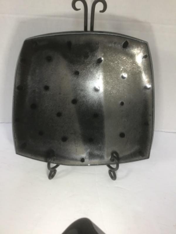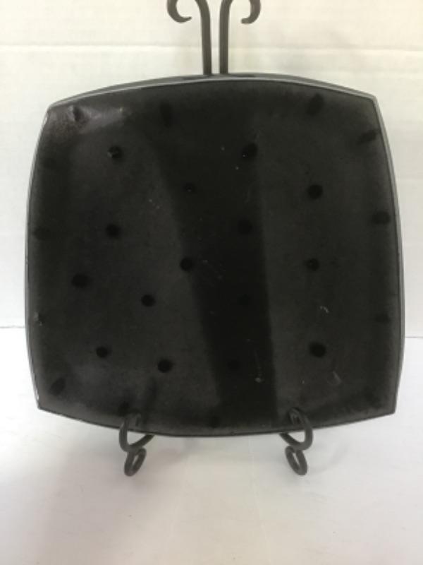 O - 1225 Artisan Signed Black Glazed Pottery Decorative Plate