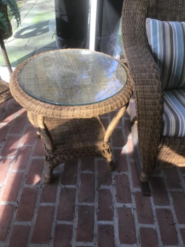 Matching Poly Resin Wicker Rattan Table with Glass Top -