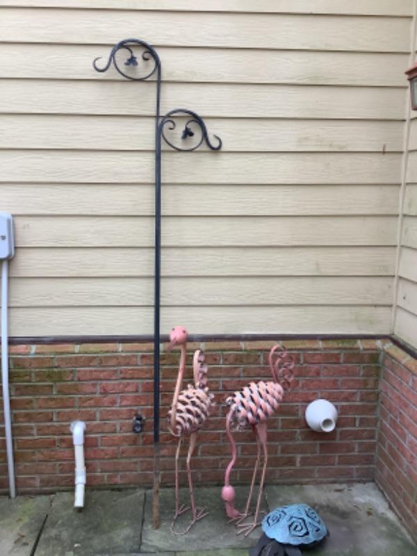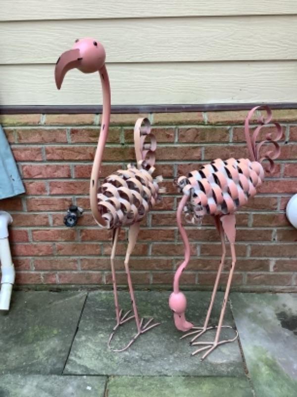 2 Metal Sculpted Flamingos - 1 ) 39.5” Tall , 1 ) 31.5” Tall