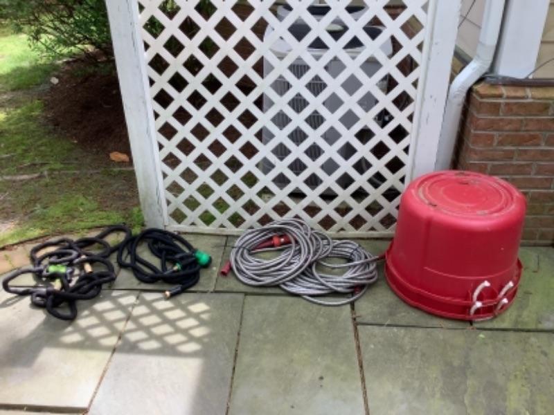 O - 280 Outdoor Hose Lot & 2 Red Large Buckets