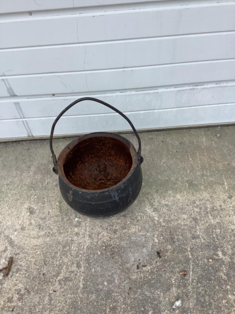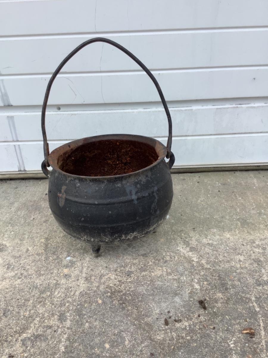 Antique Cast Iron Witches Brewing Cauldron Kettle with Handle / 3-legs