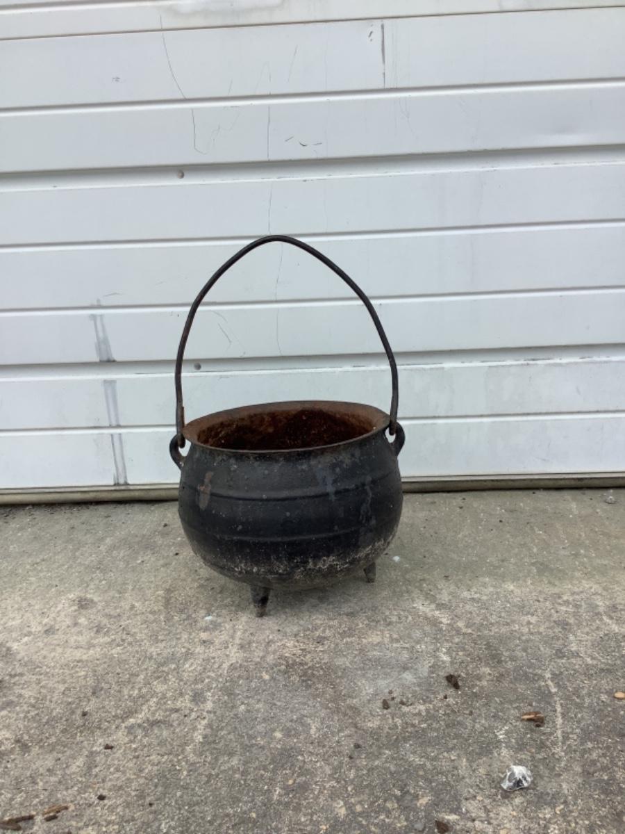 O - 345 Antique Cast Iron Witches Brewing Cauldron Kettle with Handle / 3-legs