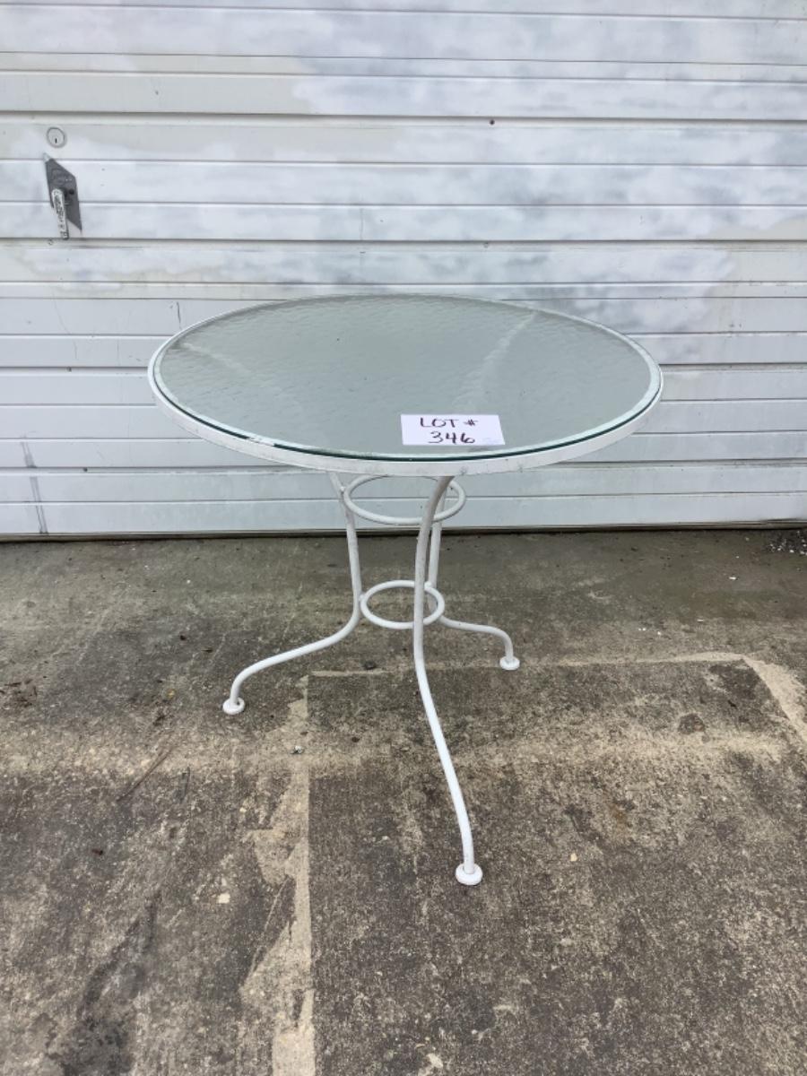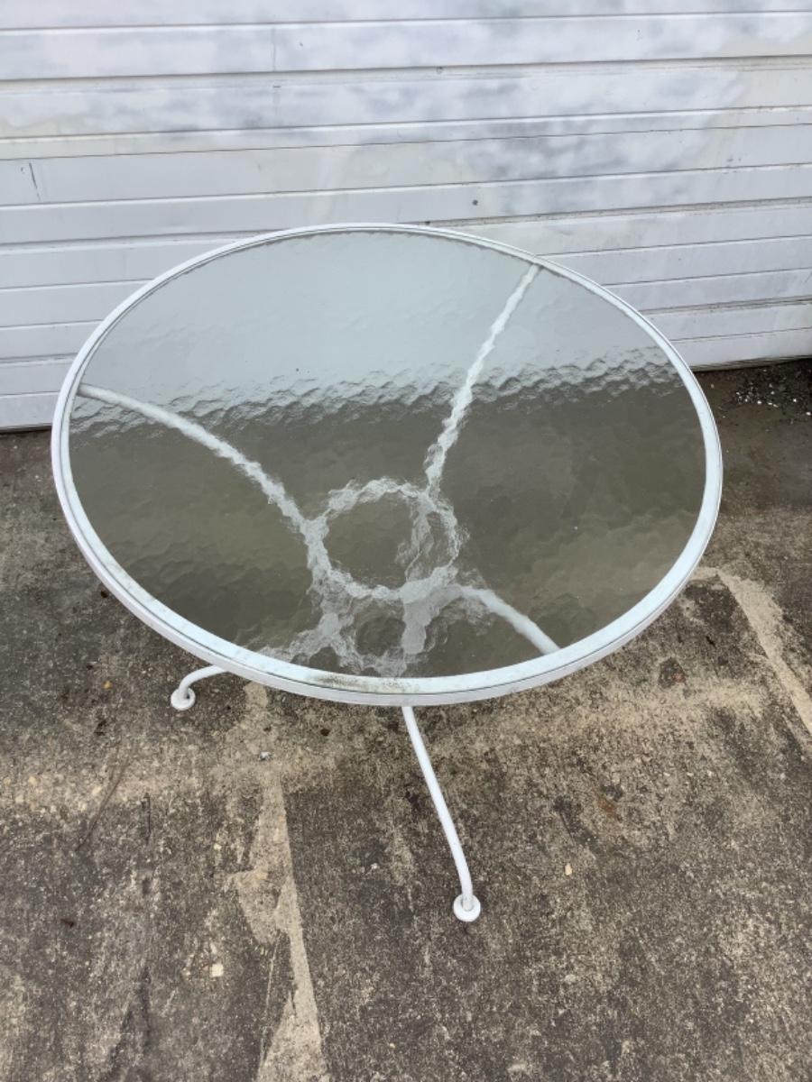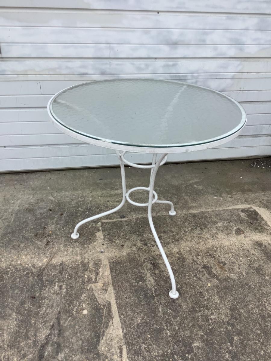 White Wrought Iron & Glass Round Table with 3 Legs -
