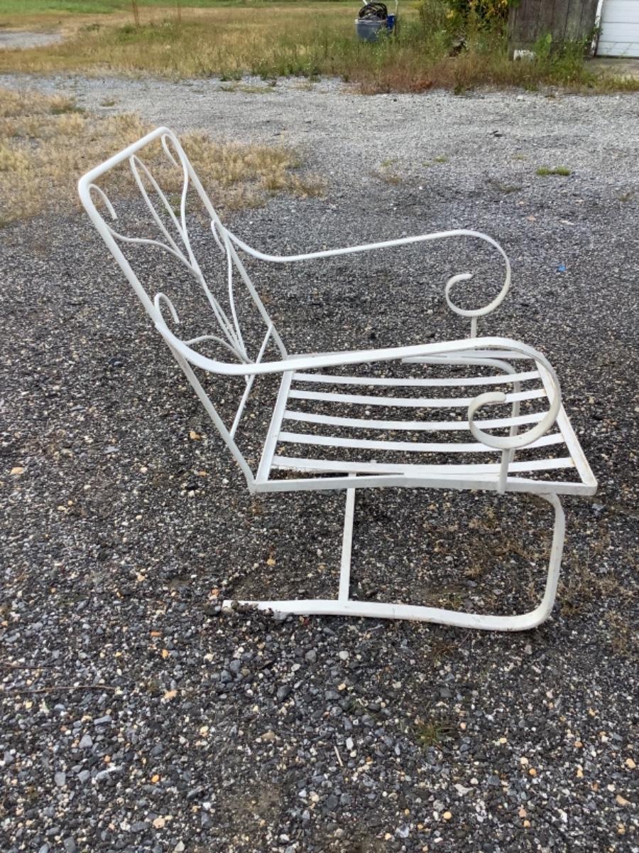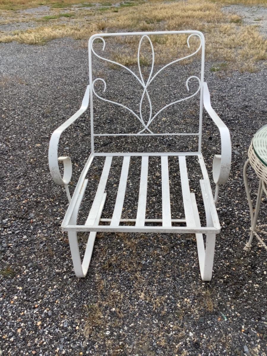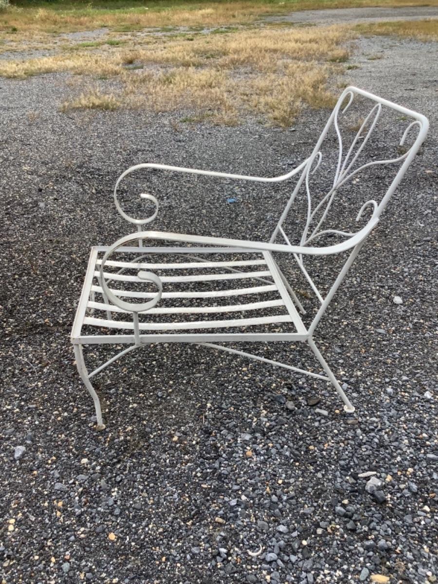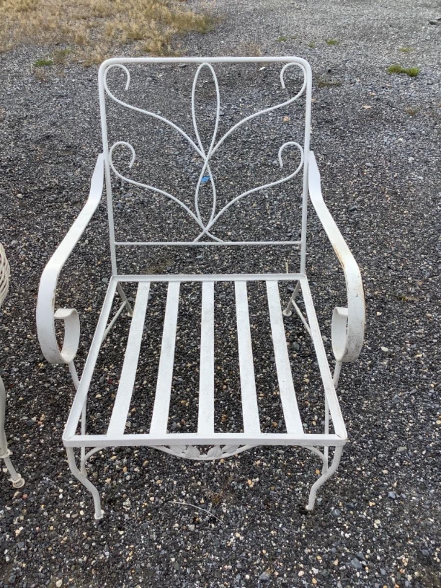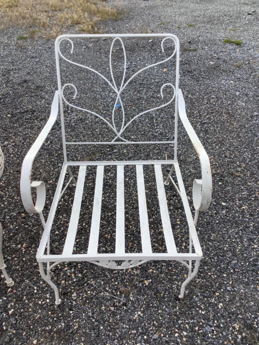 Pair White Wrought Iron Chairs with Cushions