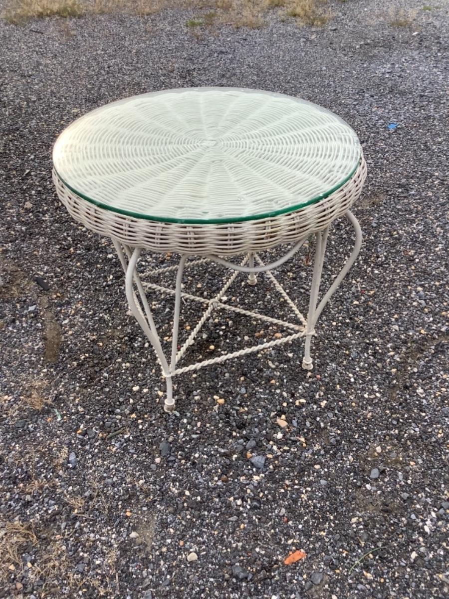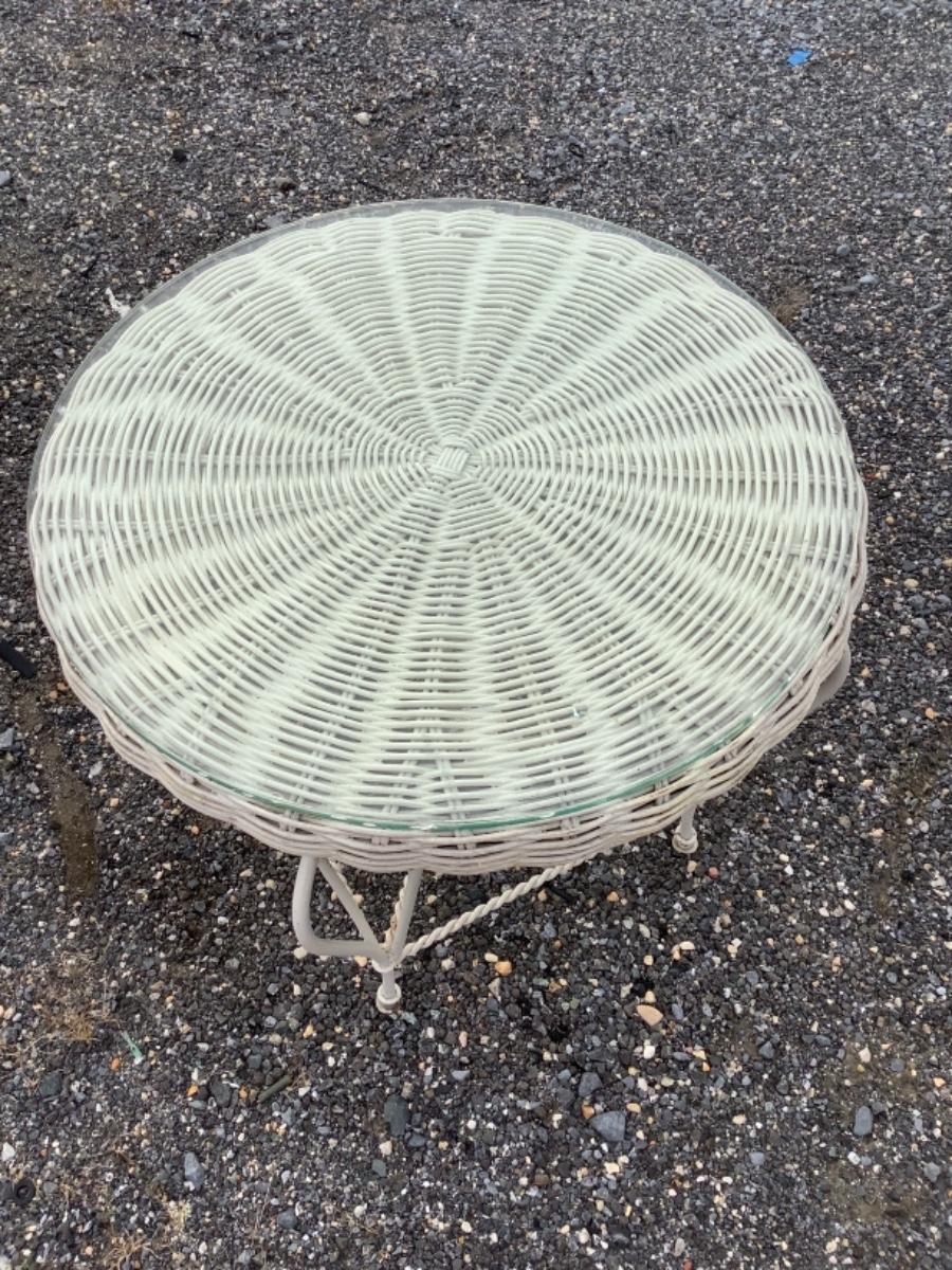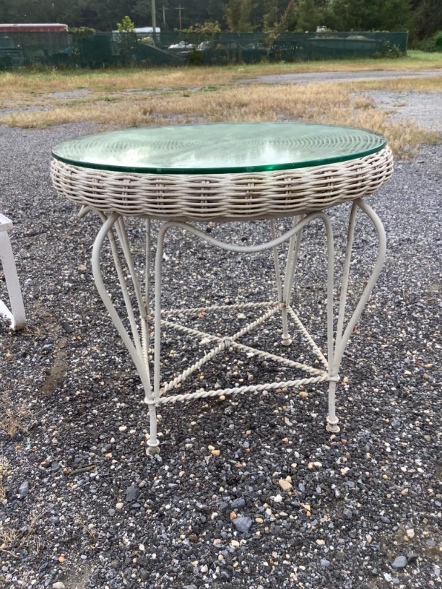 White Wicker,Wrought Iron/Glass Table,