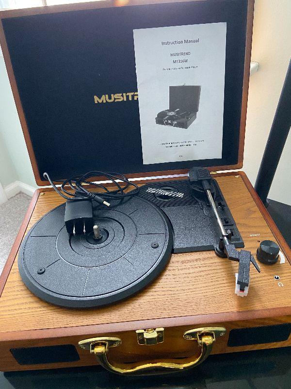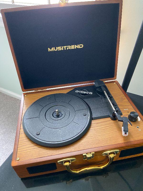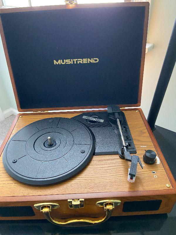Musitrend Travel Turntable. Please see all pictures for contents in this listing, the condition of items in the listing, and the size if measurements were taken. Thank you for looking and have fun bidding.