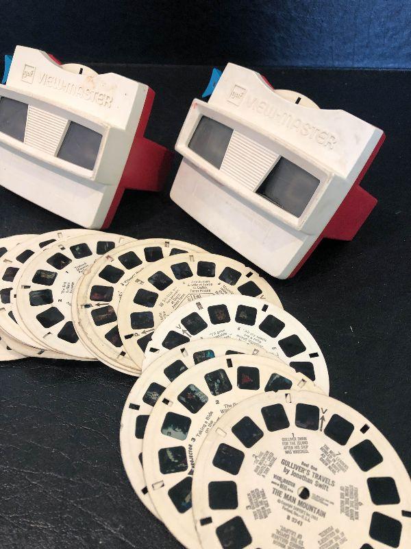 Two View Masters with cartoon slides. Untested.