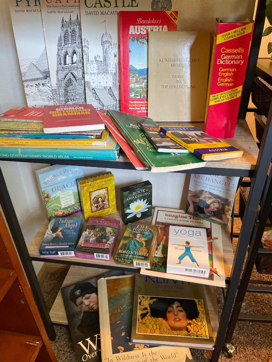 Castle books, healing books, Life and Work by Klimt book, life purpose cards, plus more