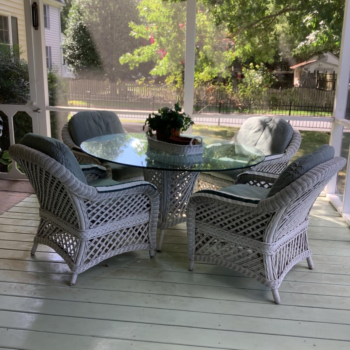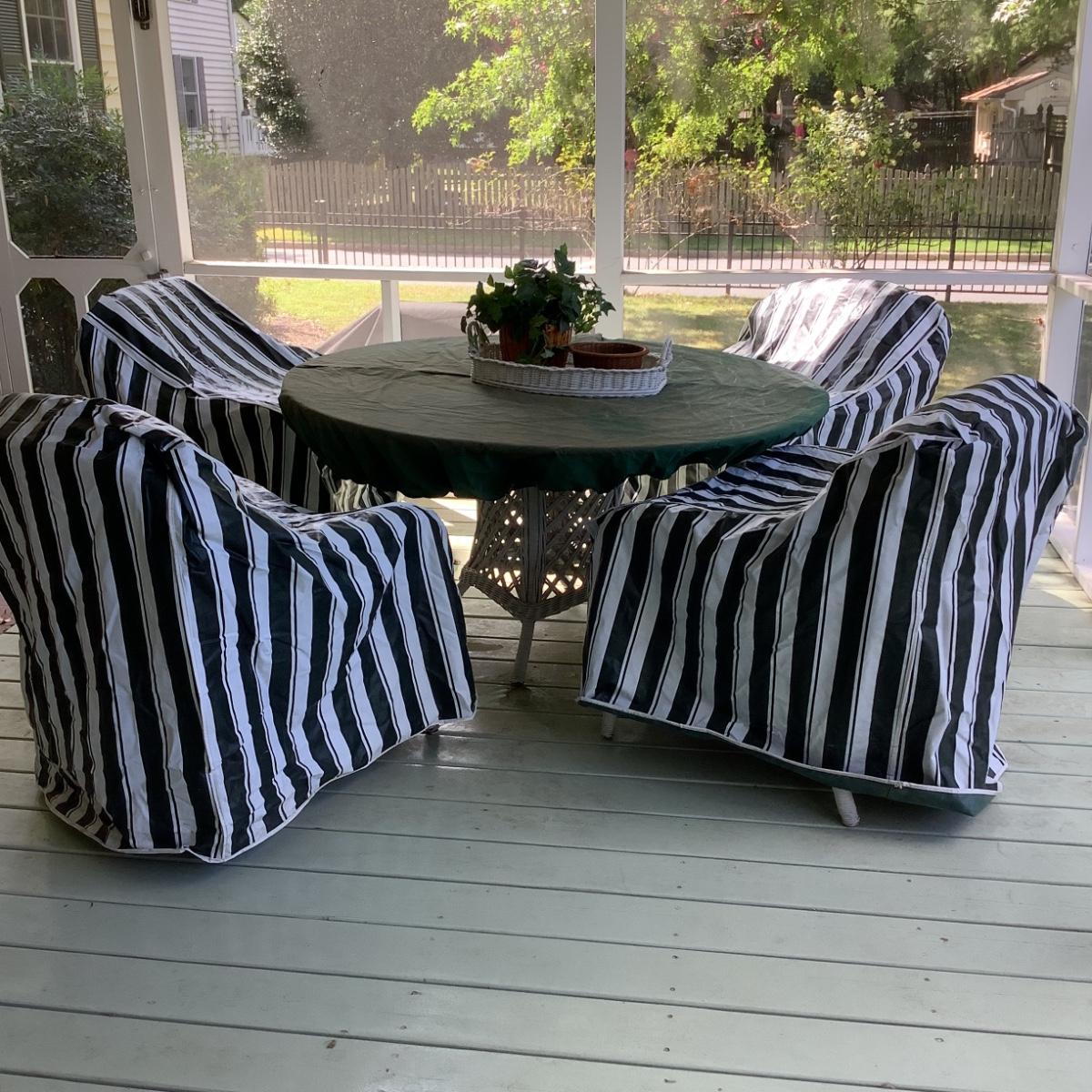 Wicker Outdoor Patio Set with Glass Top and Cover Protectors.
