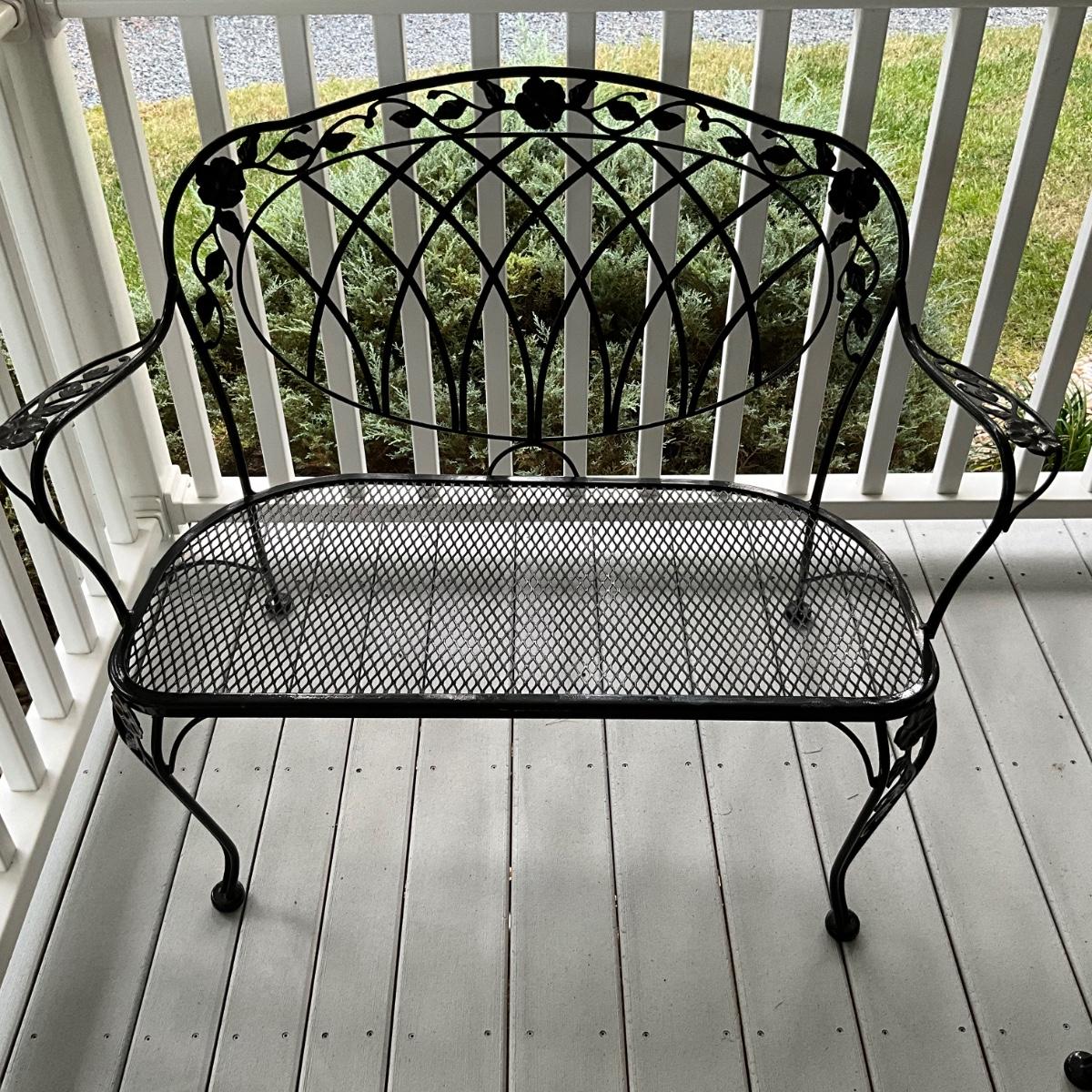 O1258 Black Wrought Iron Windflower LYON SHAW Bench
