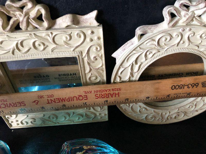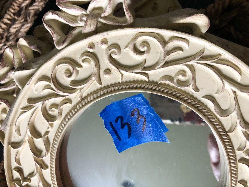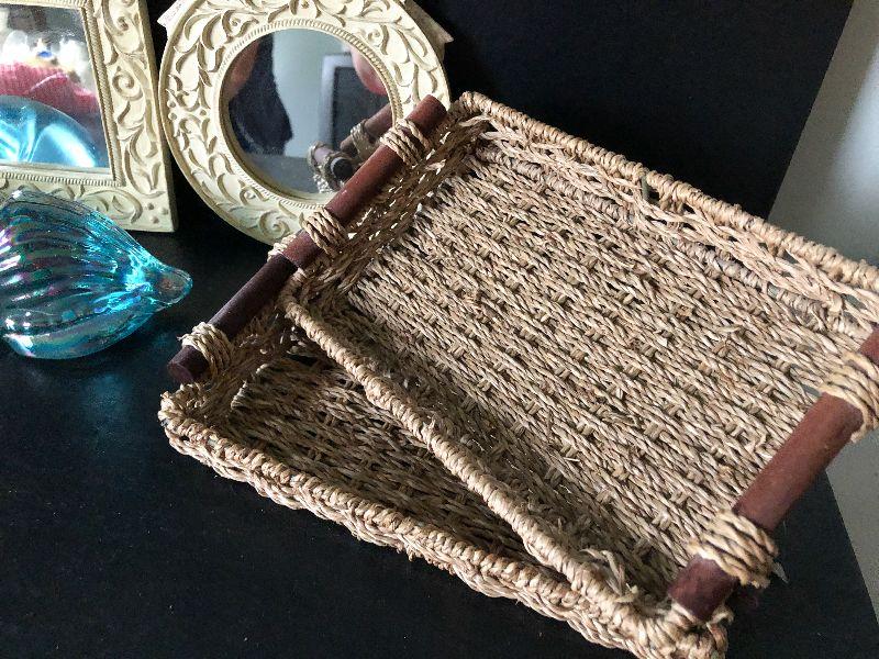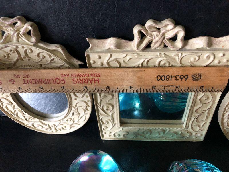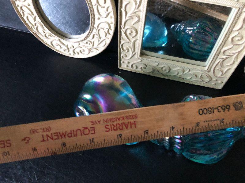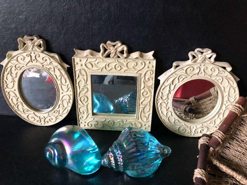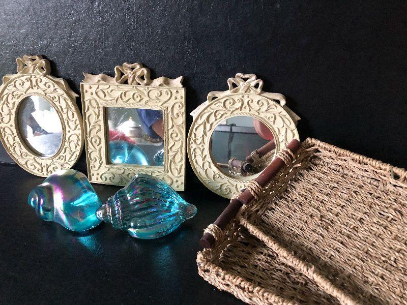 Small mirrors, baskets and glass shells.