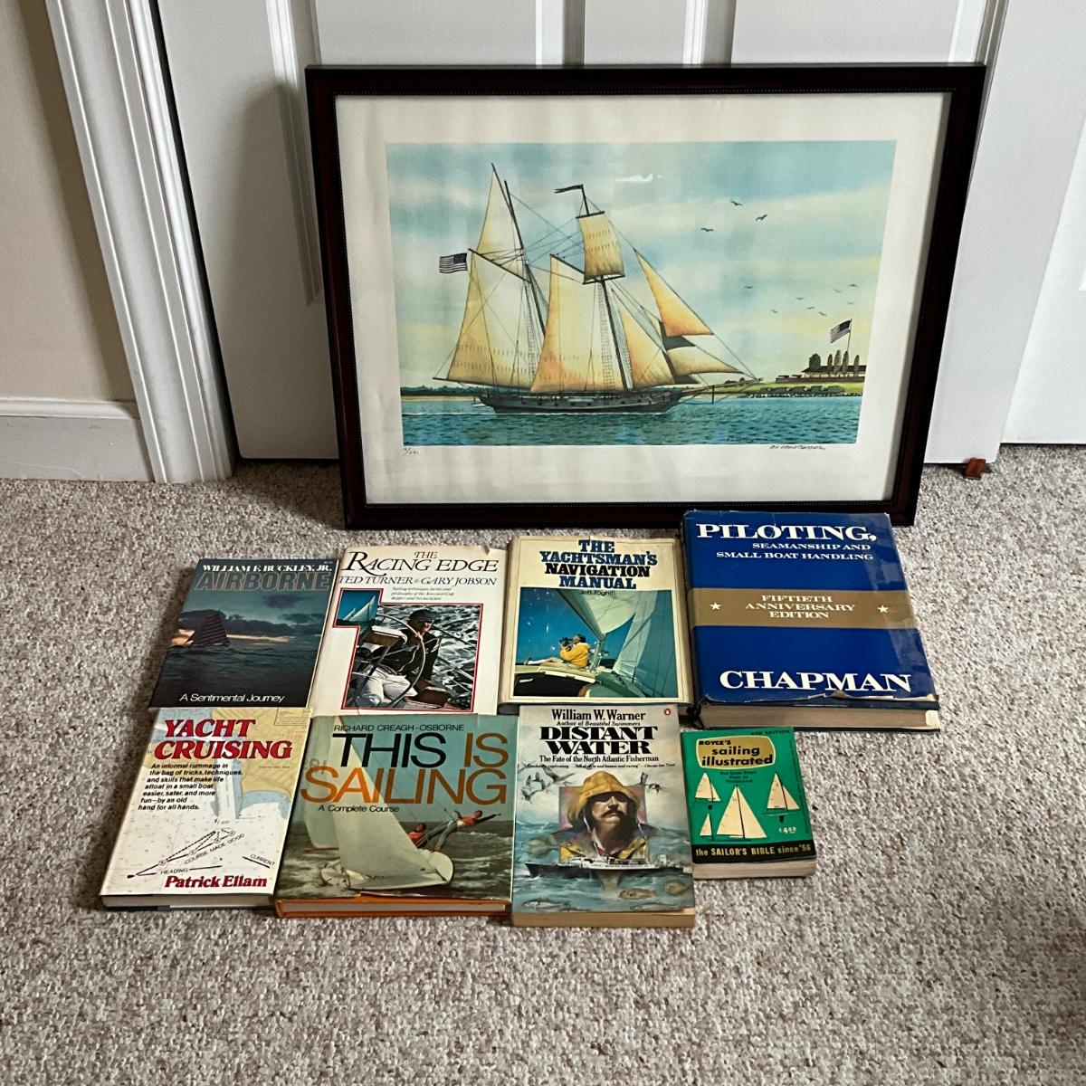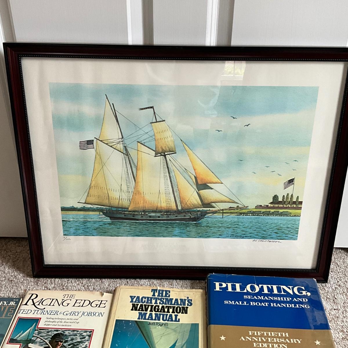 O1354 Signed and Numbered D.L. Christianson Lithograph with Sailing Books