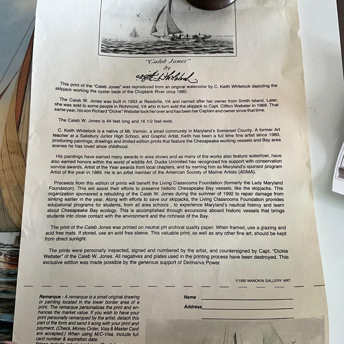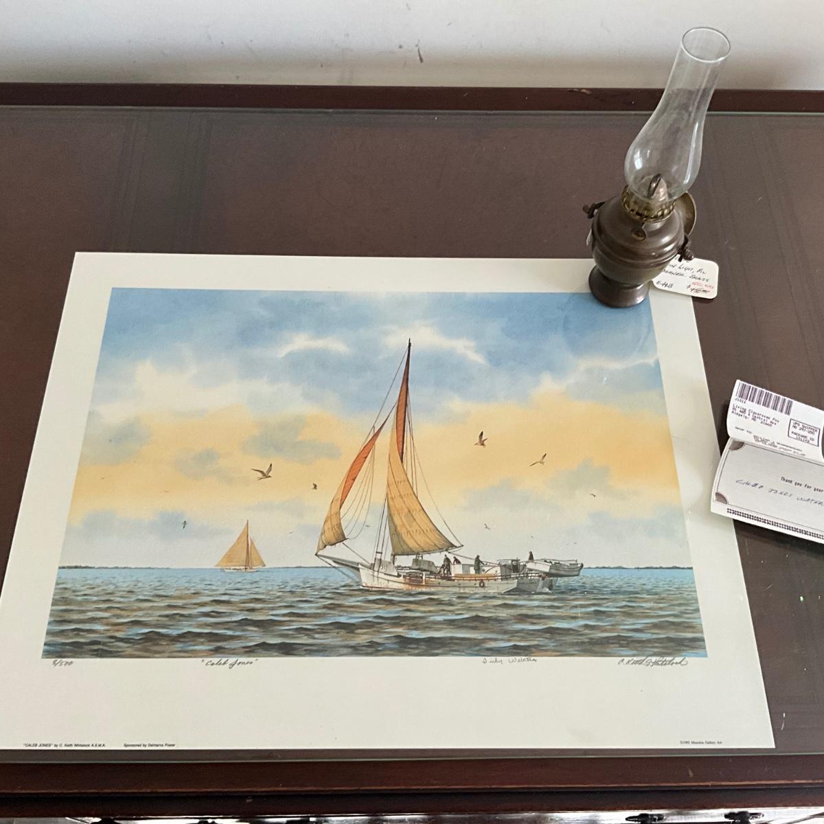 O1363 Signed and Numbered Watercolor Print by Keith Whitclock & Boat Captain "Caleb Jones"