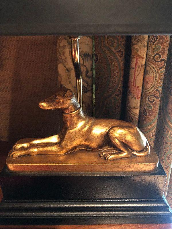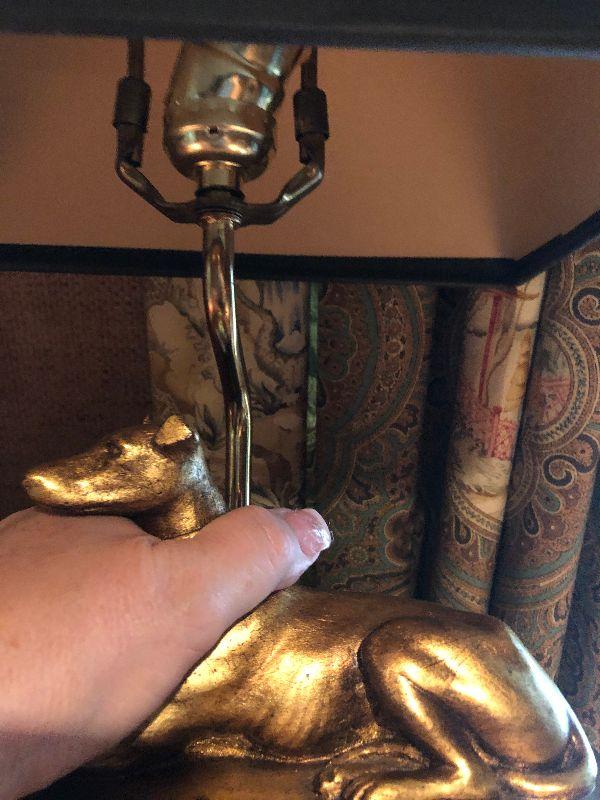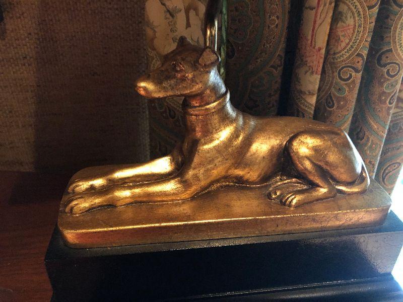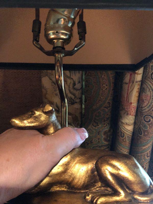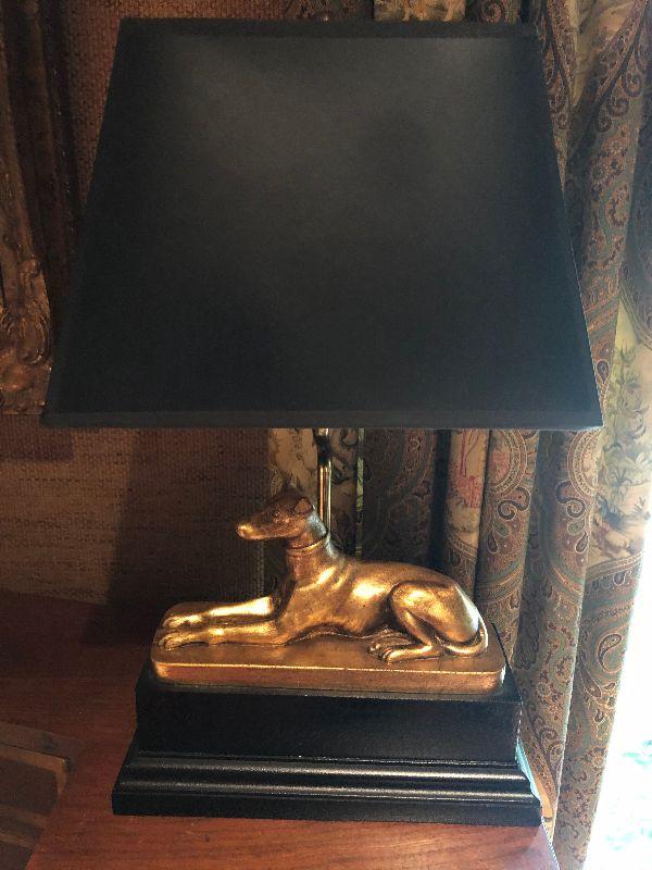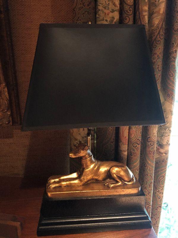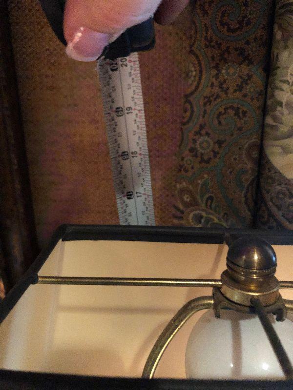 Quite heavy for it's 16" size. Black lampshade with cast bronze on slab base.