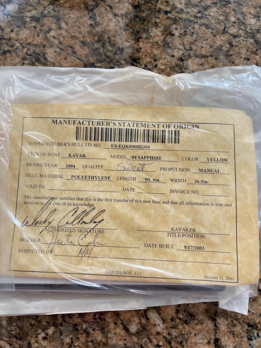 O1417 Sapphire LiquidLogic 9’ 6” Kayak