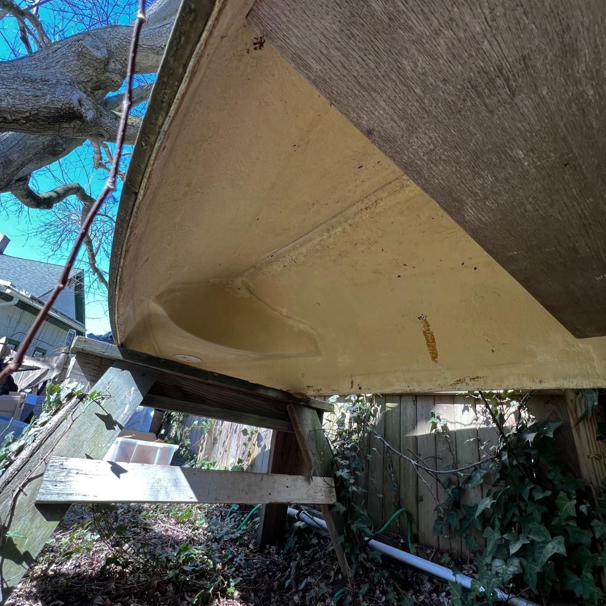 Stored outside, paint is wearing off. Boat is 12foot 9” Long.