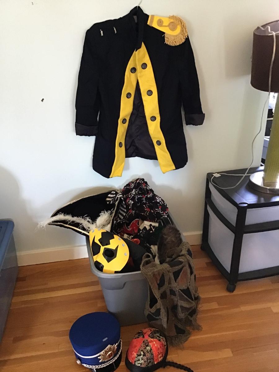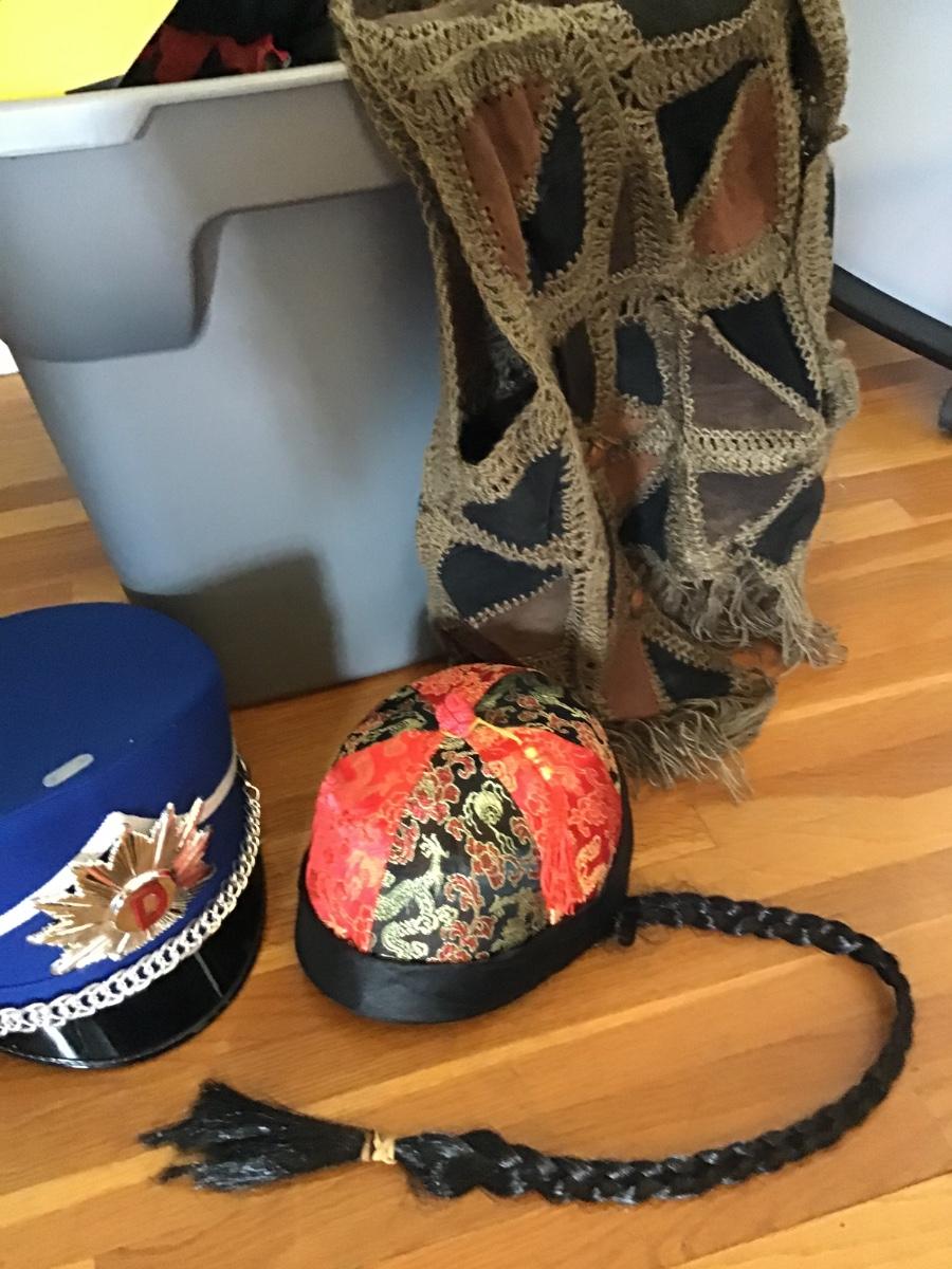 See pics, includes pirate hat/cape, Marching Band Hat, Chinese Hat, Michael Jackson Glove, vintage Vest, so much more