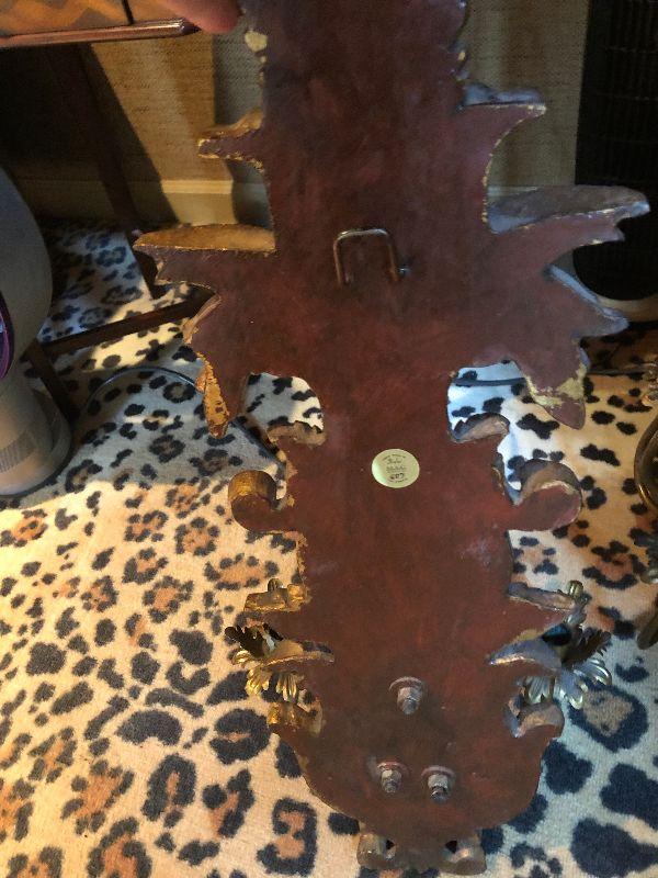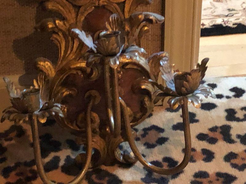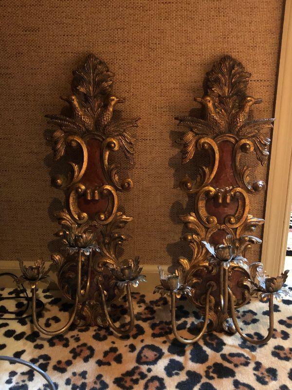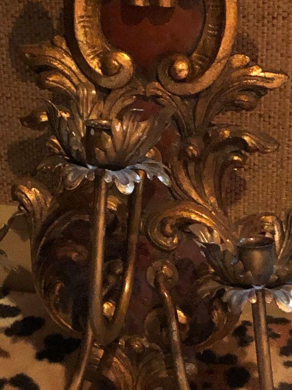 O18: Ornate Vintage Gold Rococo Wall Sconces w/ Candleholders
