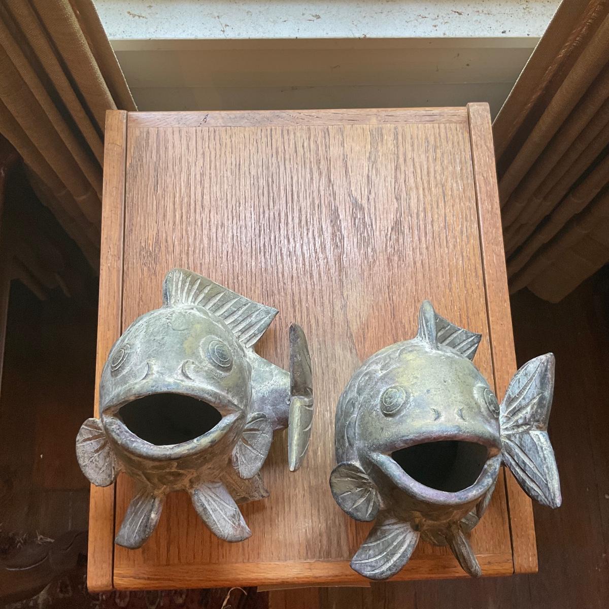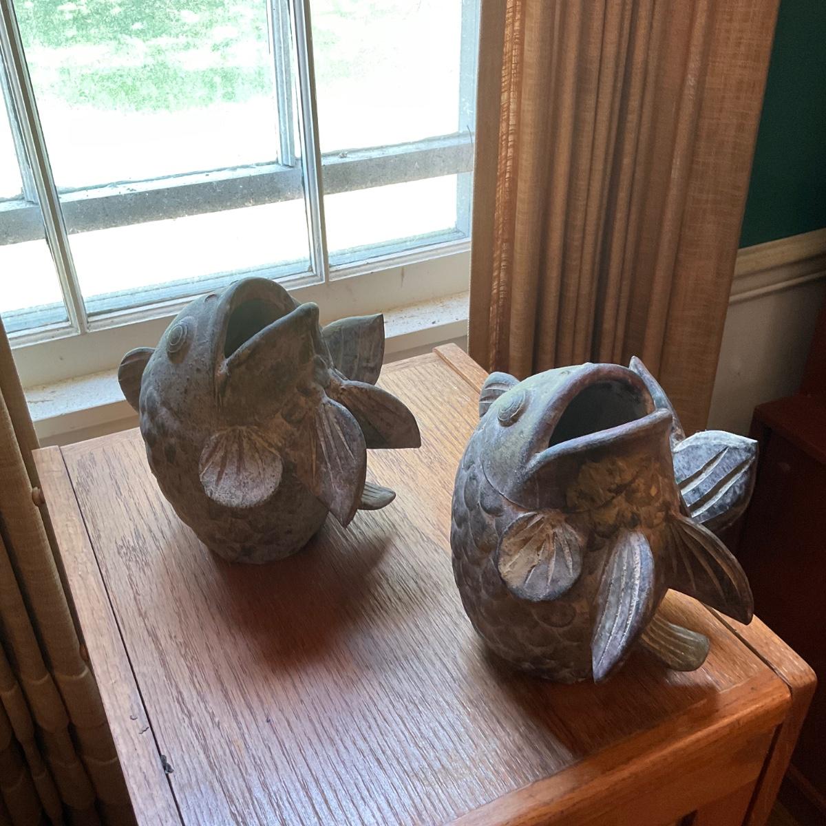 O18 Pair of Mid-Century Terracotta Koi Fish Sculpture Vases