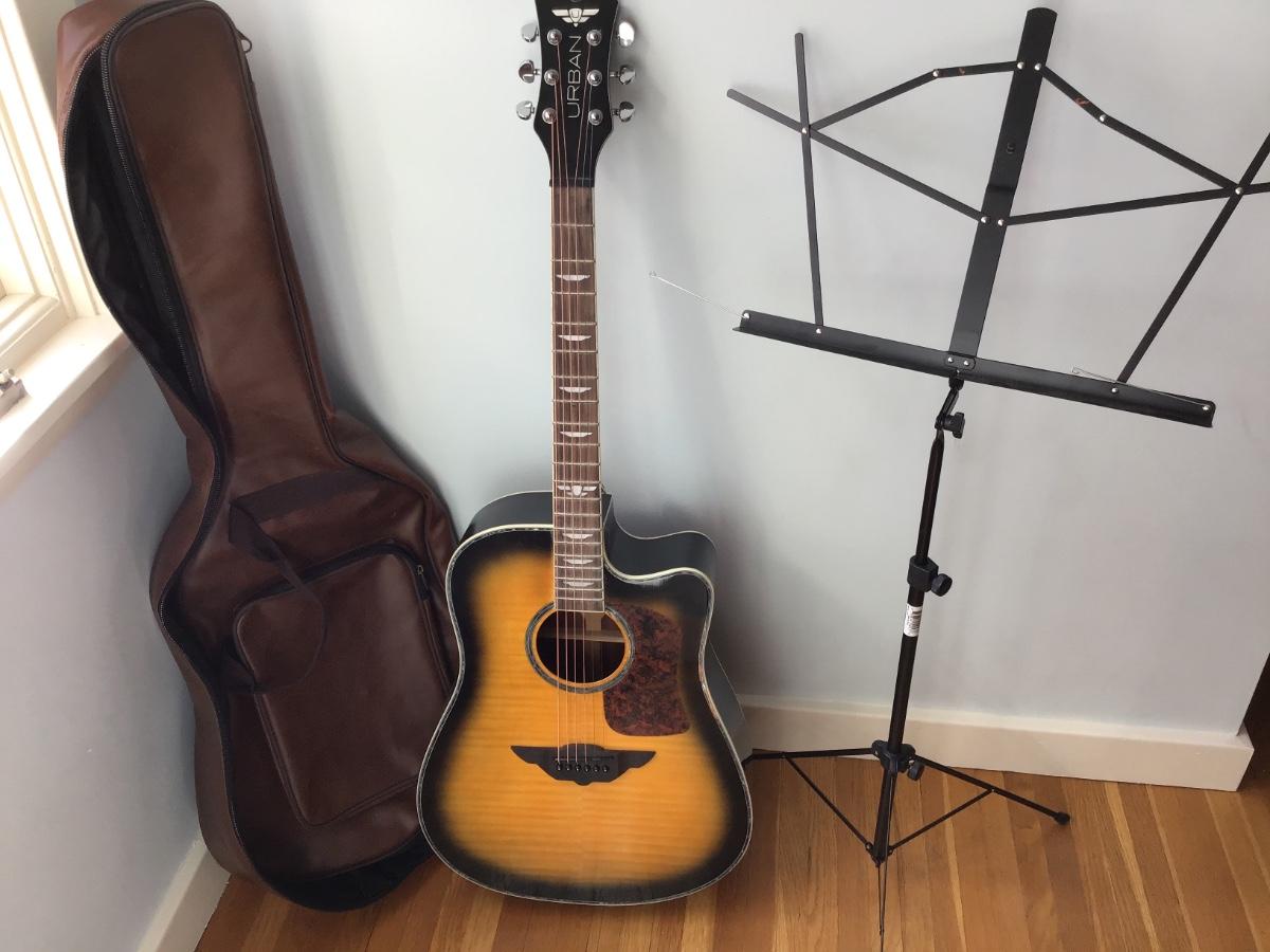O184 - Urban Accoustic Guitar, Case & Music Stand