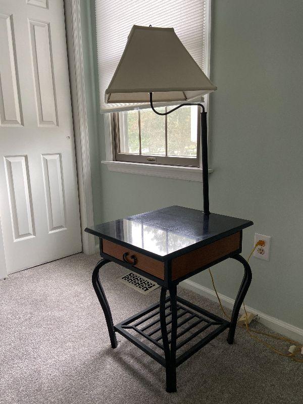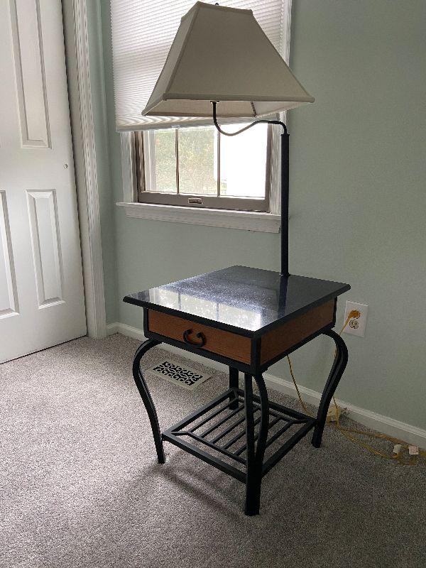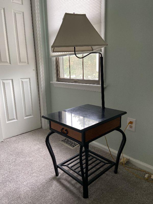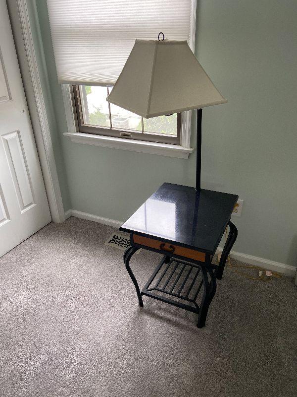 Table with attached lamp. Please see all pictures for contents in this listing, the condition of items in the listing, and the size if measurements were taken. Thank you for looking and have fun bidding.