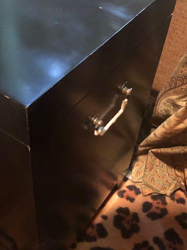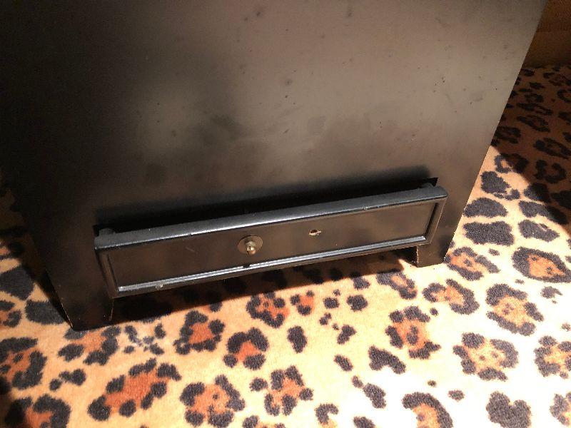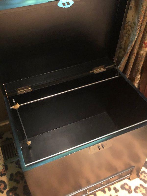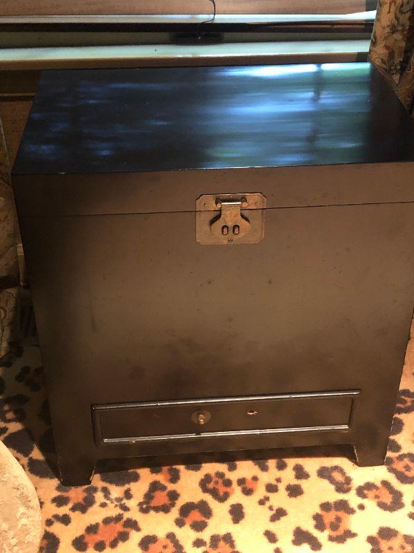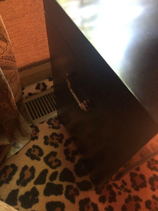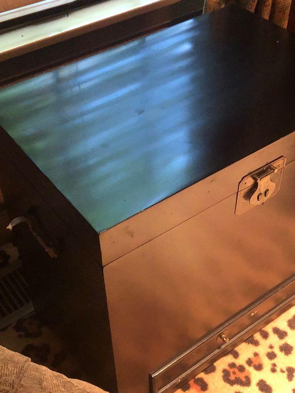 Keep your files in style with this wood with brass filing chest. Please note a missing handle piece in drawer front. 19"x20"x12"