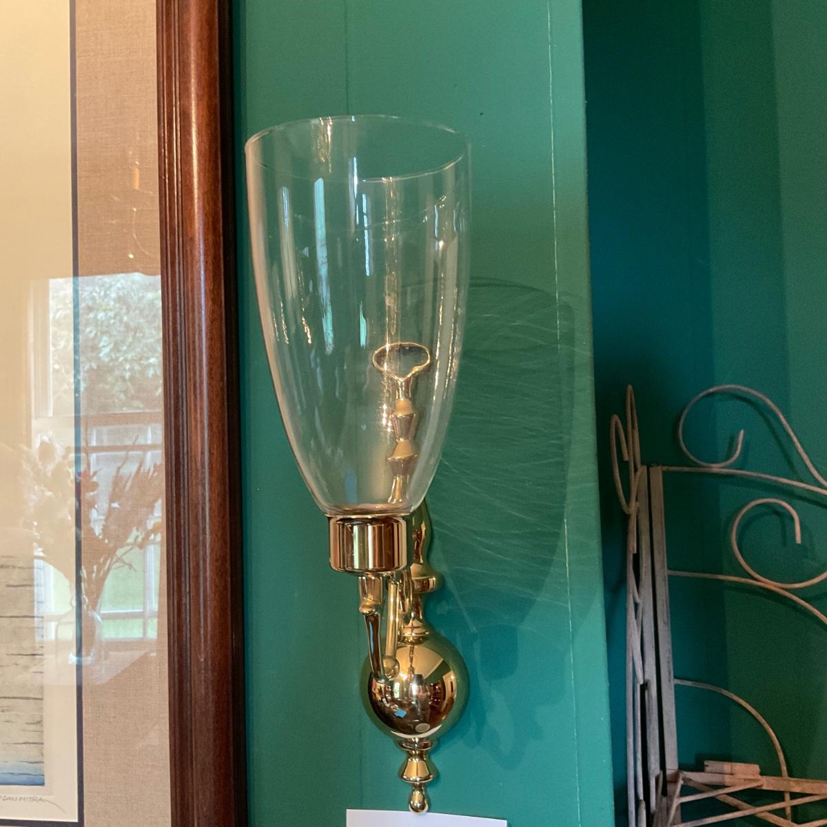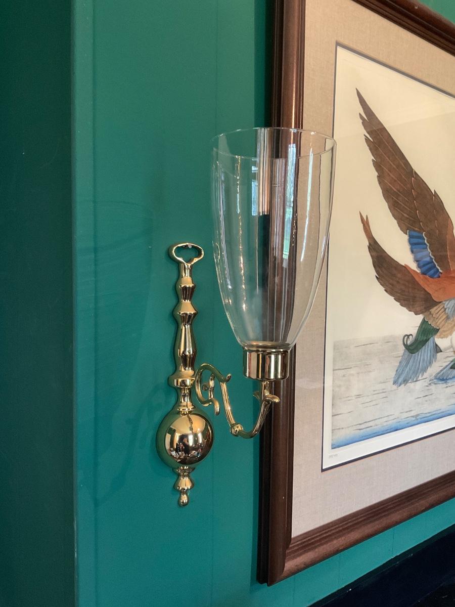 O20 Pair of Brass Hurricane-Style Wall Sconces