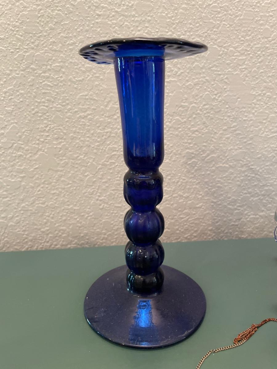 Blue and clear glass art signed by Donnelly ‘91 and miscellaneous