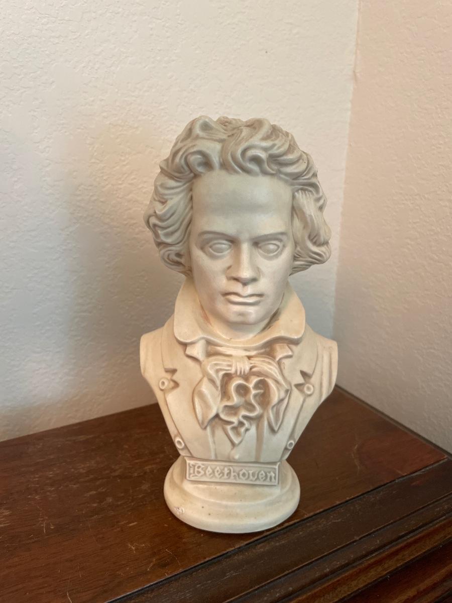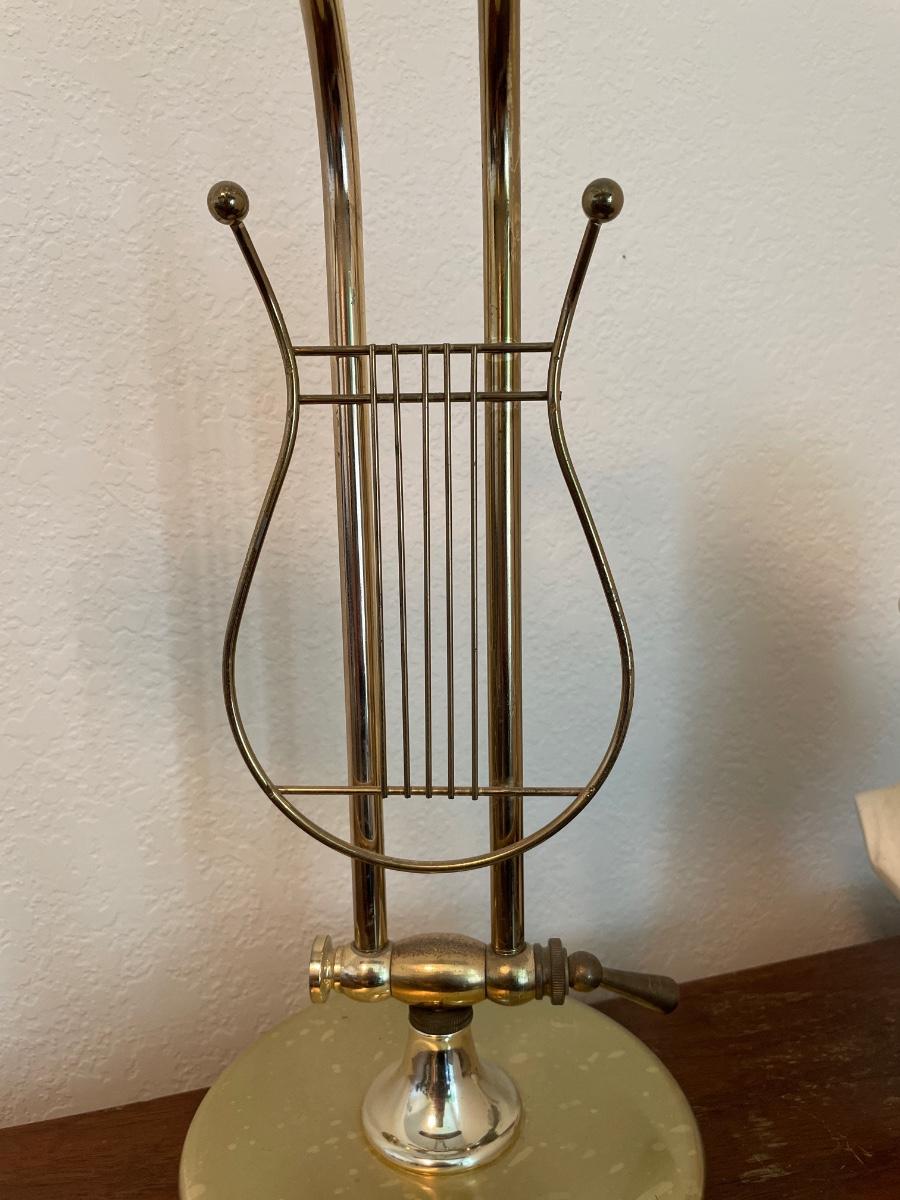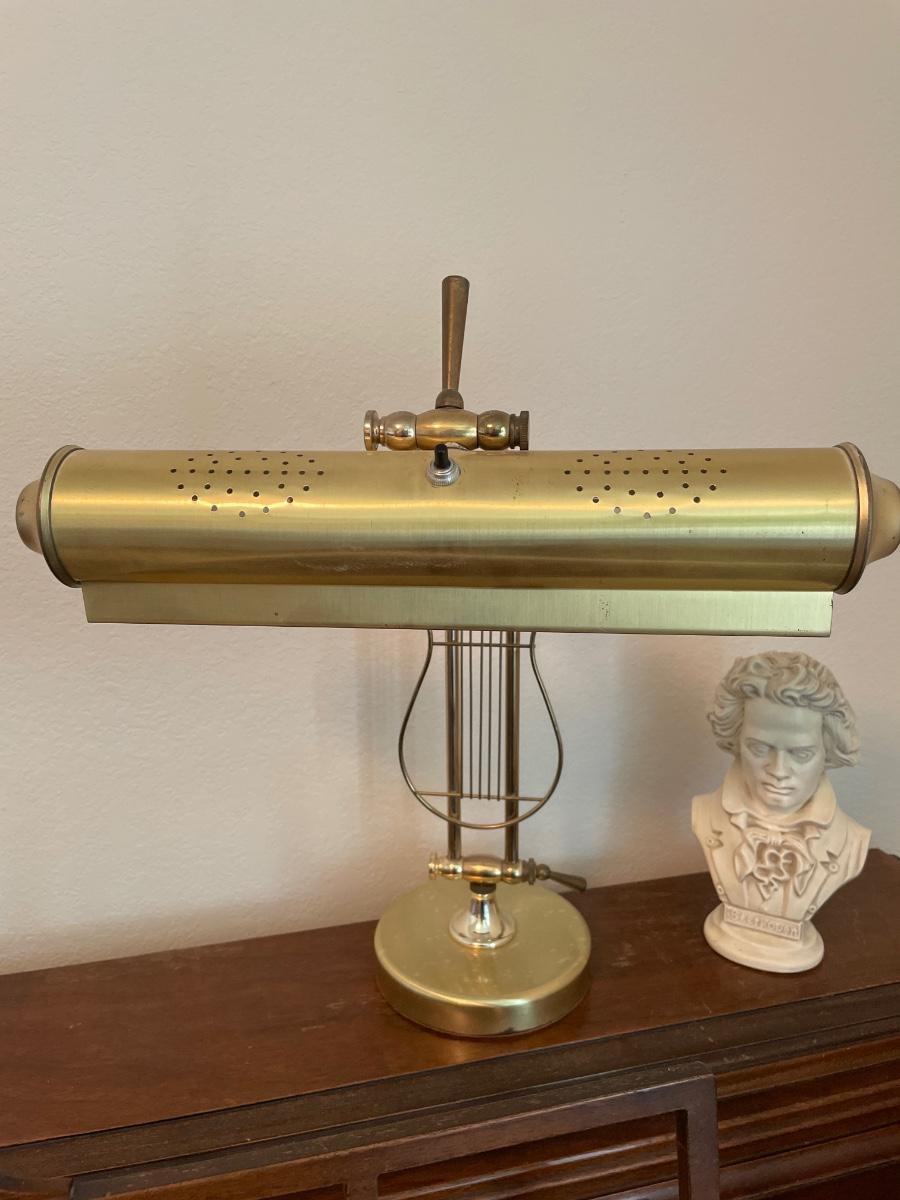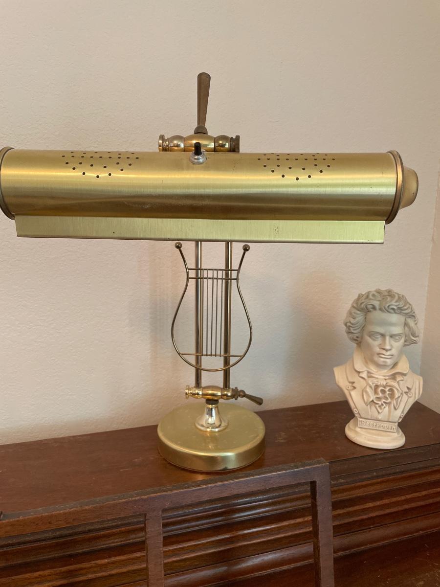 Vintage piano lamp with harp design. Beethoven ceramic bust.