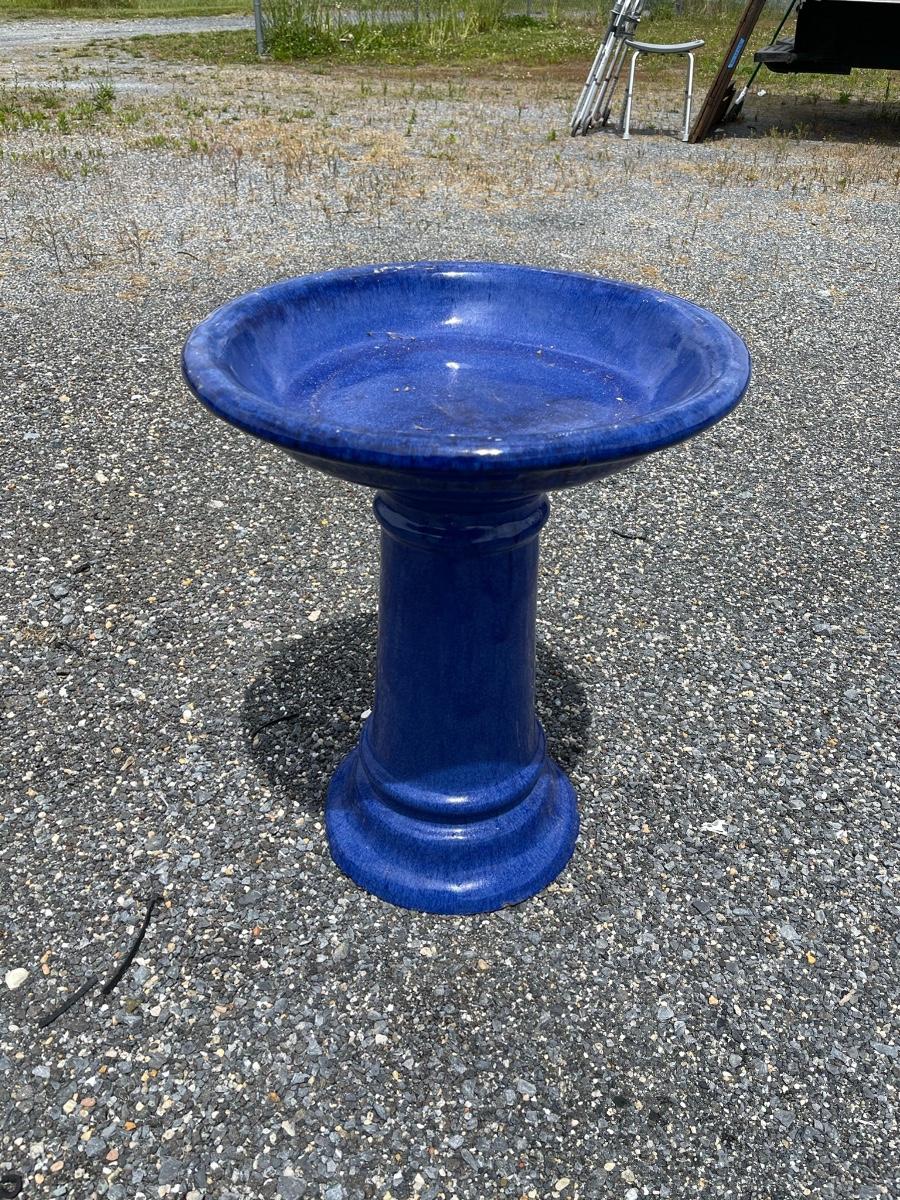 Bird bath measures 24” tall and has a 19” round bowl, great condition