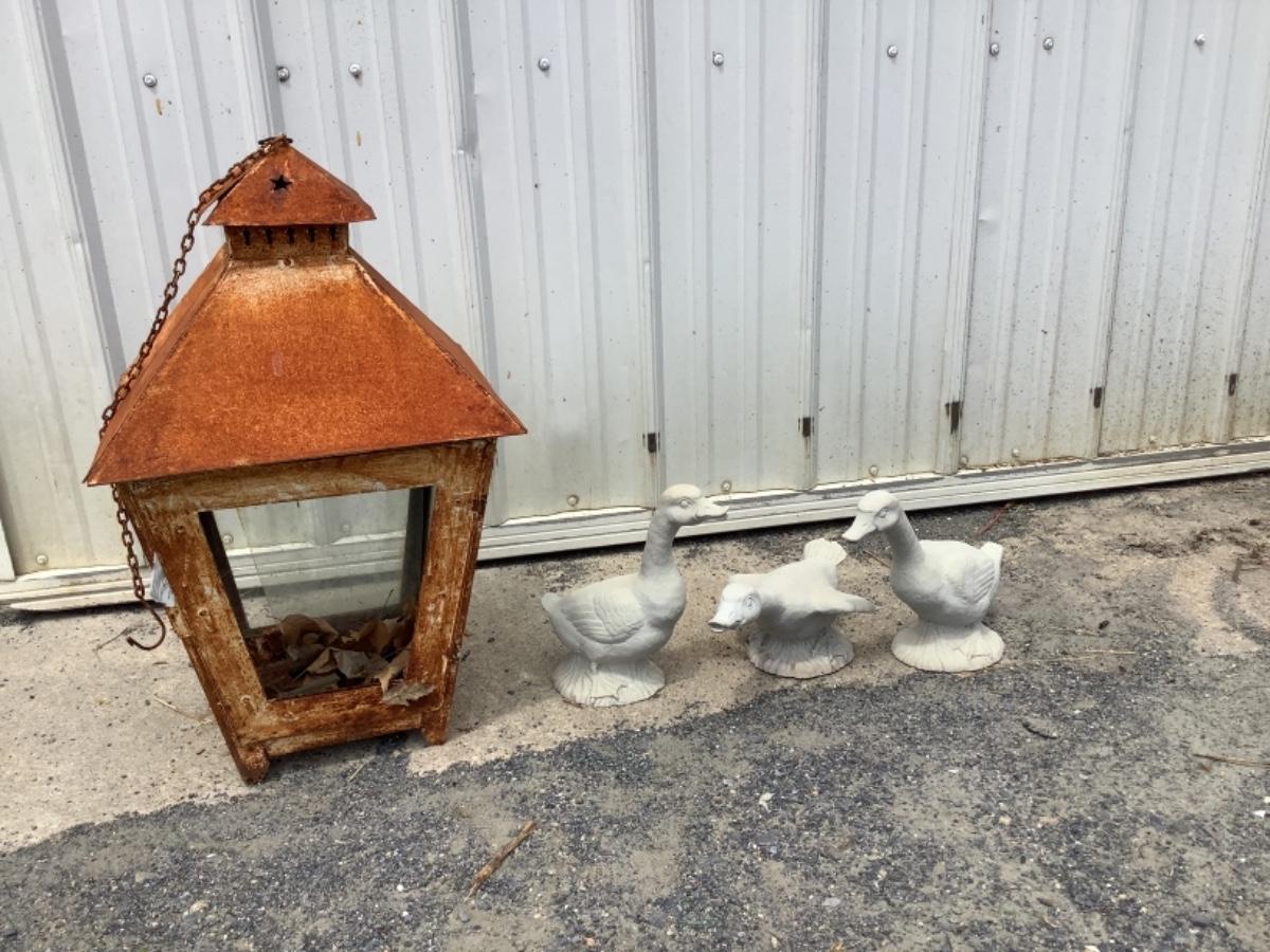 O2235 Metal Hanging Lantern and 3 Composite Duck Statues