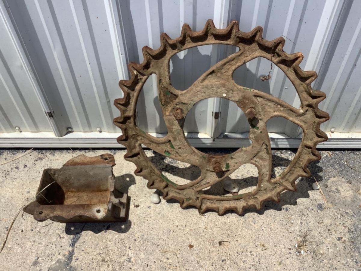 Large antique sprocket measures 20” round and antique blacksmiths anvil