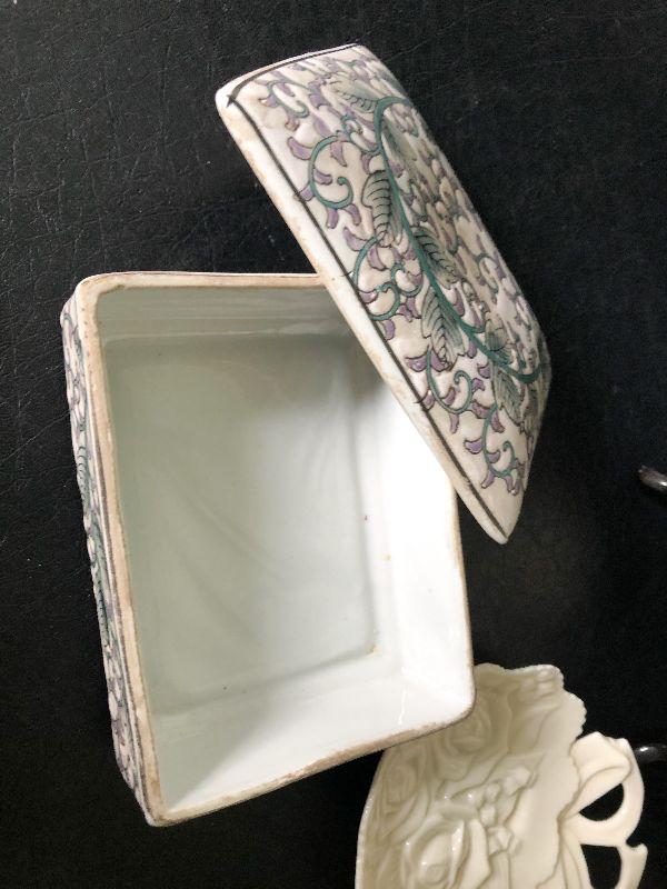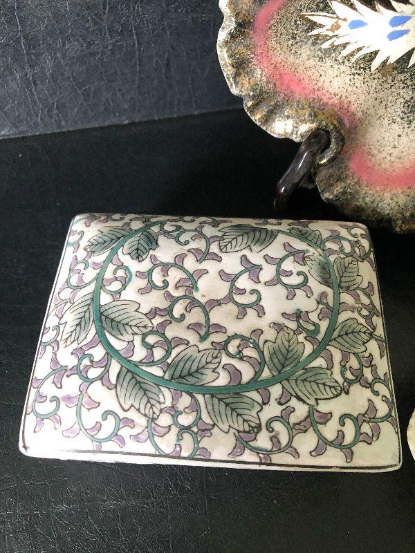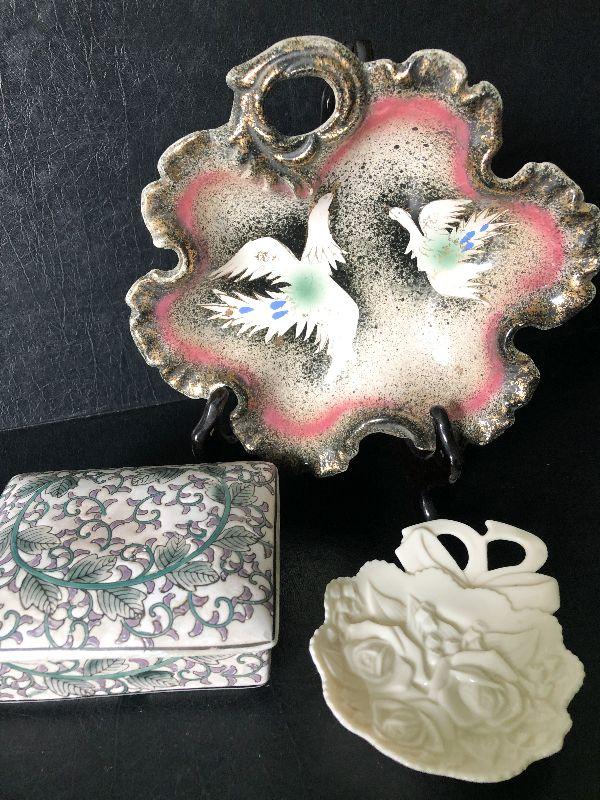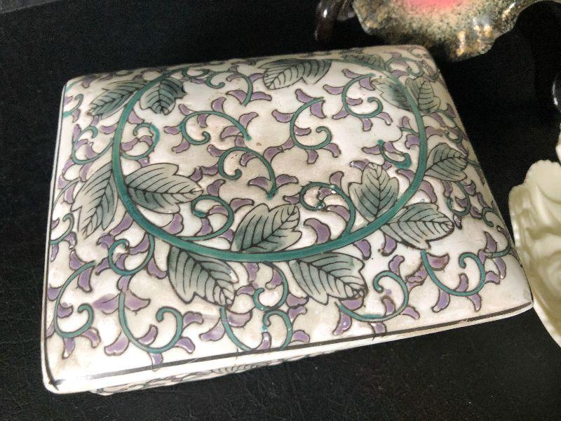 Unique collection of trinket dishes. Trinket box is hand painted.