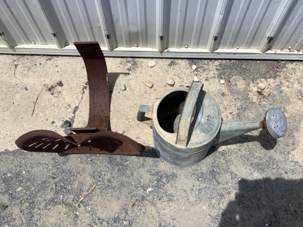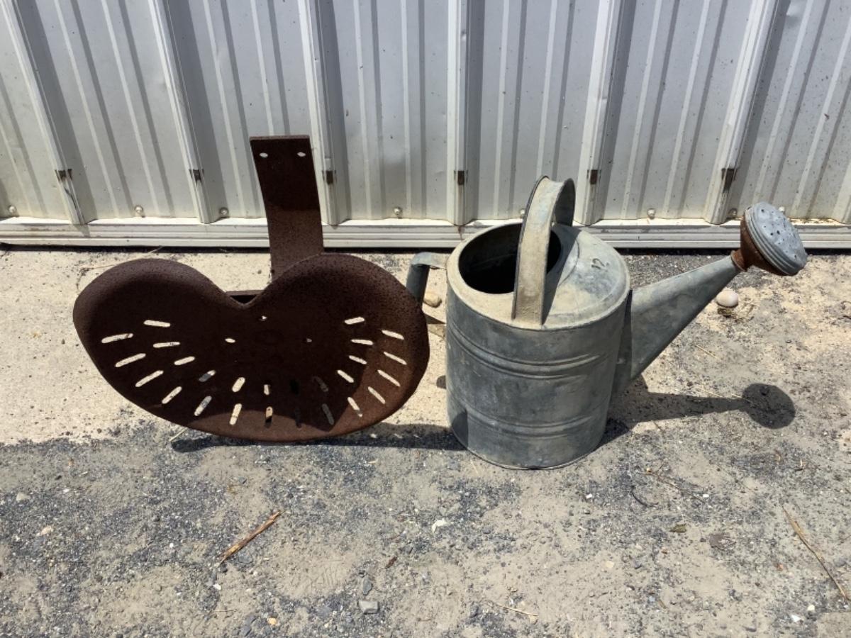 O2445 Antique Tractor Seat and Galvanized Steel Watering Can