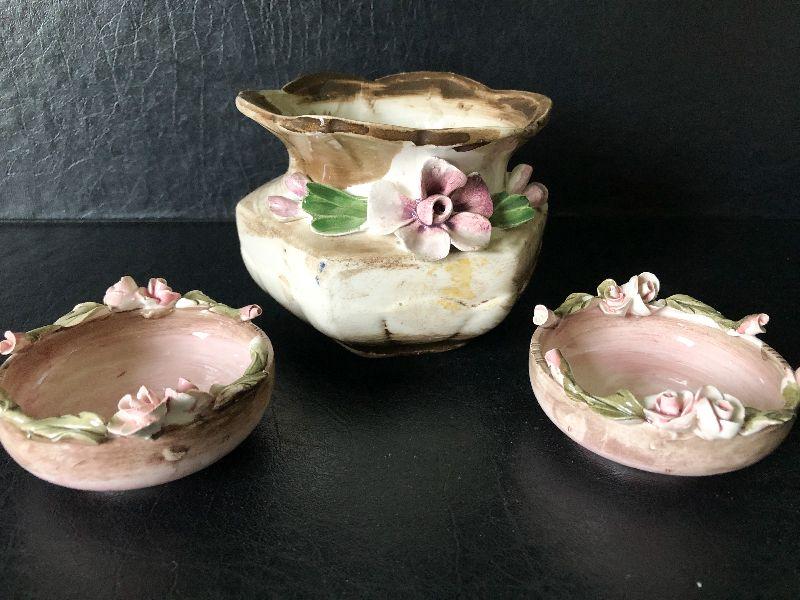 O4: Capodimonte Porcelain Jar and Trinket Bowls